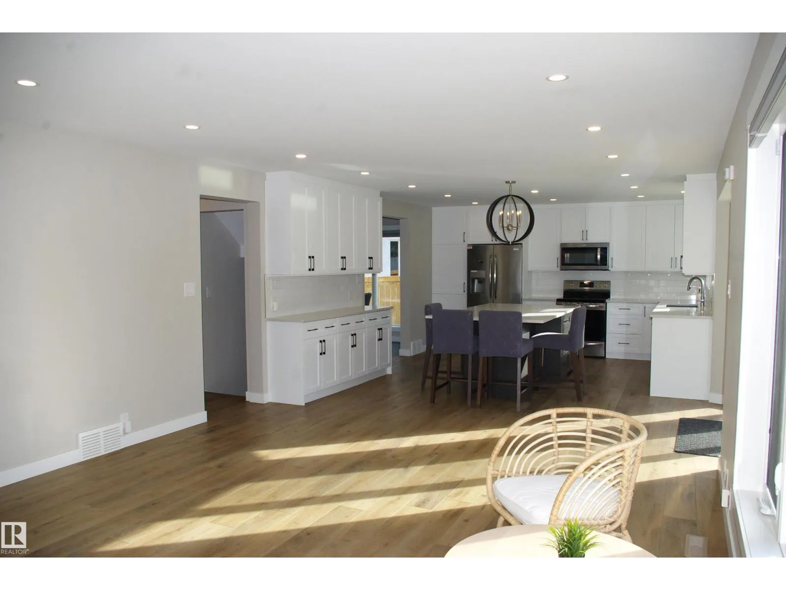 The best combination, an excellent location, with absolutely nothing left to do. Stylish 1875 sq ft two storey on a pie lot, tucked away in a cul-de-sac inside a crescent. Vaulted ceilings over the living and dining rooms, open to the upstairs. Delightful open plan at the back of the house, with a beautiful island kitchen, white
