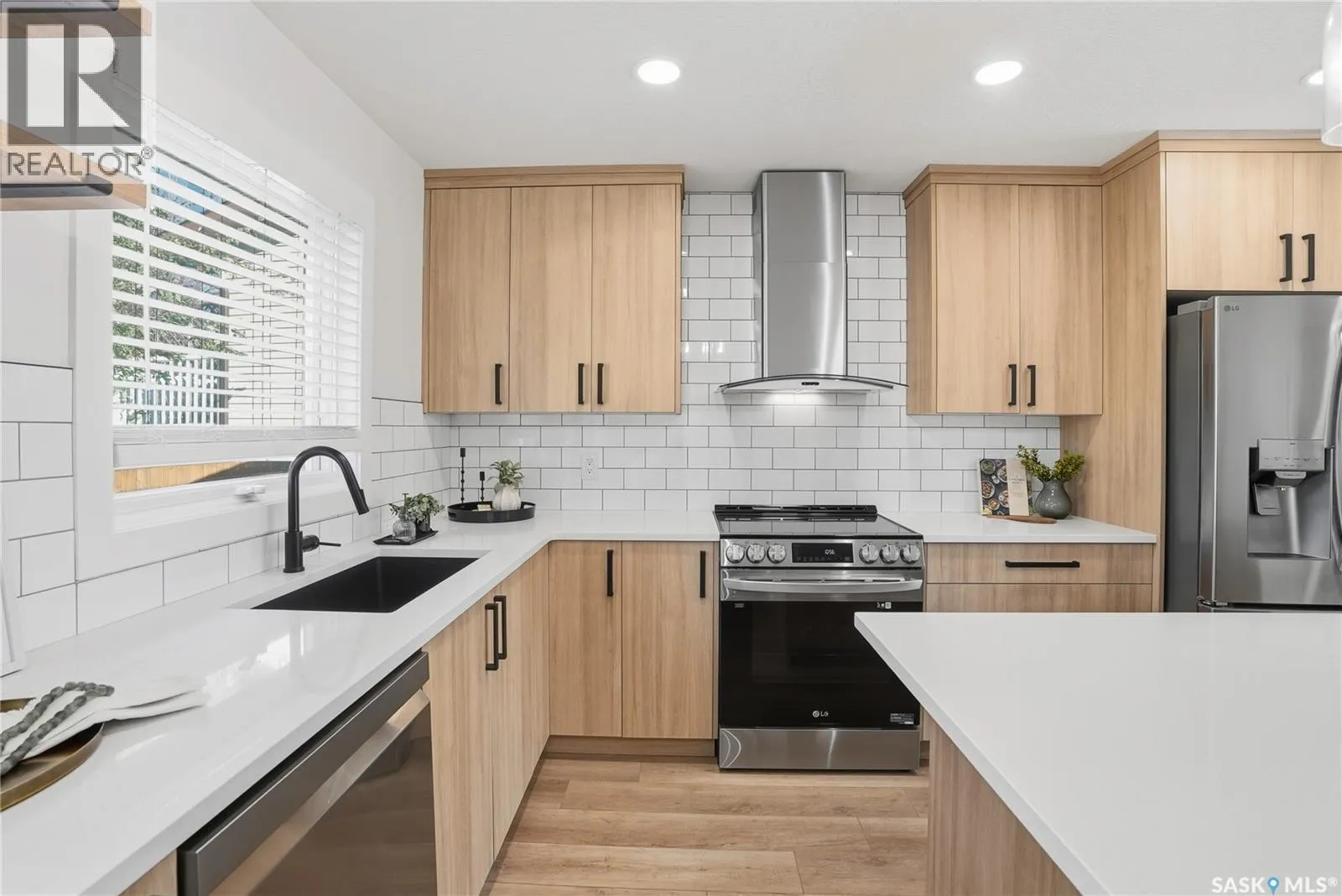 This Lakeridge FAMILY HOME is sure to knock your socks off! Fully professionally developed on all 4 levels, 5 bedrooms, 3 full bathrooms. The main floor welcomes into an open concept SPACIOUS great room with white oak vinyl plank flooring throughout, featuring an architectural panelled wall, a completely redone Majestic white oak kitchen with a large island, granite countertops, full