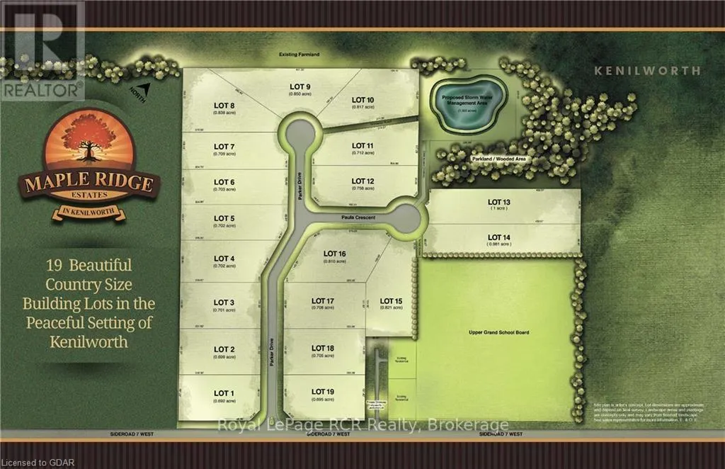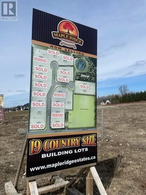 Build your Dream Home in this beautiful 19 lot rural subdivision! Rare one acre building lot ready to go, in a newer country subdivision in the peaceful Hamlet of Kenilworth. This 96’x440′ lot is situated at the end of a quiet cul-de-sac amid neighbouring custom homes. High speed internet available. Architectural guidelines are applicable for all new homes being proposed.