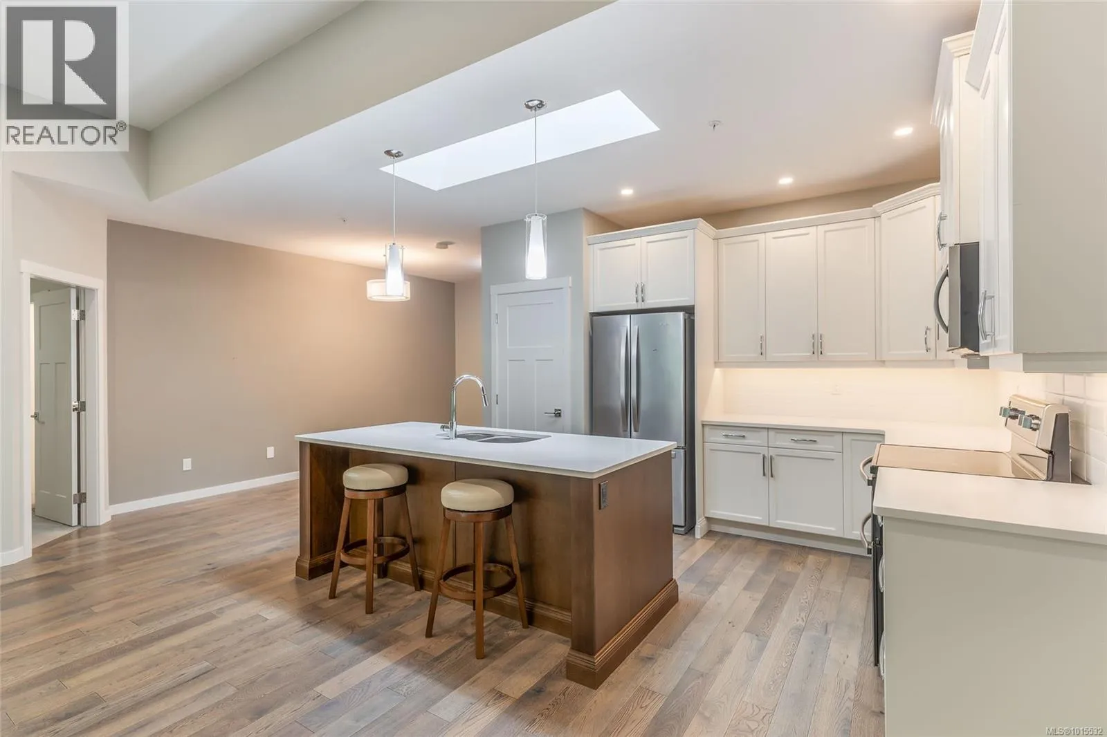 Backing onto protected greenspace and a pond, this beautifully maintained 2 bedroom 2 bathroom patio home nestled in one of Nanaimo’s most desirable communities, Emerald Woods. Step inside to find a spacious open-concept layout with natural light, featuring a stylish kitchen with quartz countertops, stainless steel appliances, pantry and a spacious island perfect for entertaining. The living area boasts a
