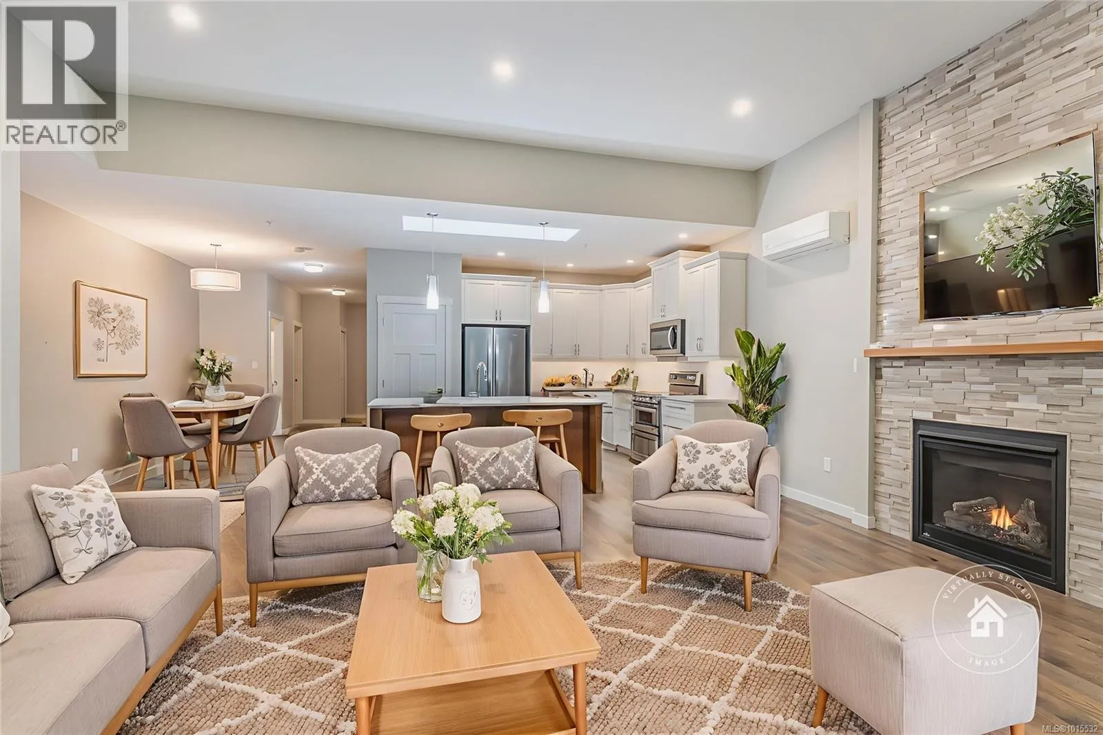 Backing onto protected greenspace and a pond, this beautifully maintained 2 bedroom 2 bathroom patio home nestled in one of Nanaimo’s most desirable communities, Emerald Woods. Step inside to find a spacious open-concept layout with natural light, featuring a stylish kitchen with quartz countertops, stainless steel appliances, pantry and a spacious island perfect for entertaining. The living area boasts a