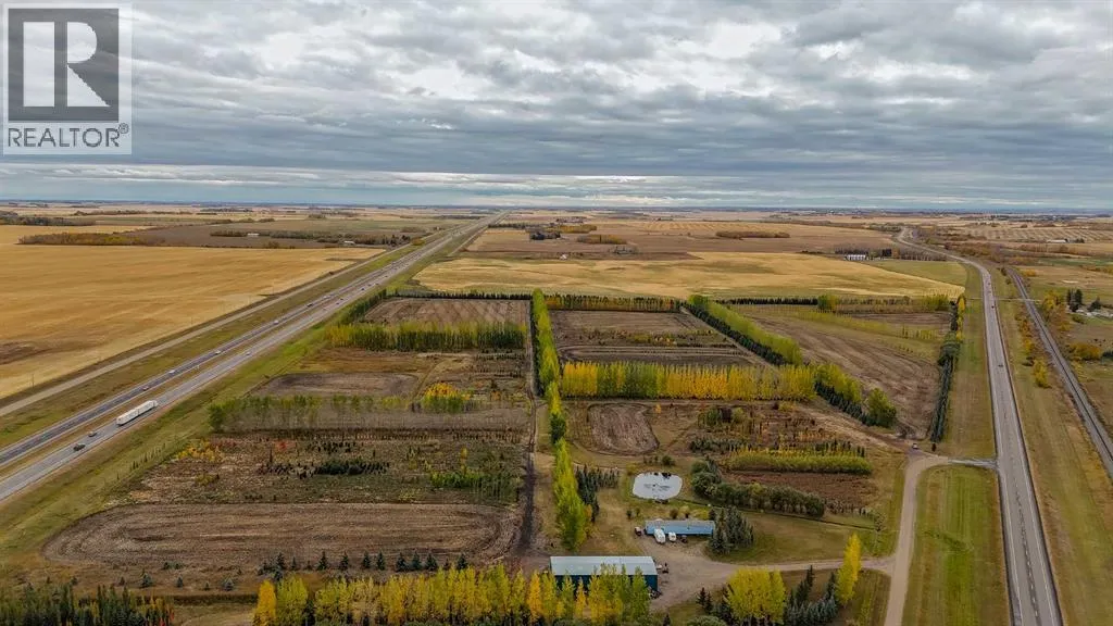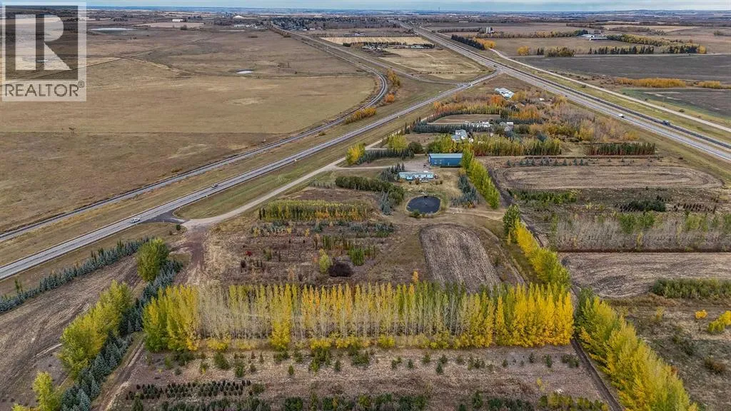 Prime strategically located property offering a rare opportunity to establish or expand a commercial nursery, tree farm, or garden centre operation. This 88.06-acre parcel is ideally located between Highway 2 and Highway 2A, just south of Bowden, providing exceptional visibility and high traffic exposure along the busy corridor between Bowden and Olds — only 20 minutes to Red Deer and