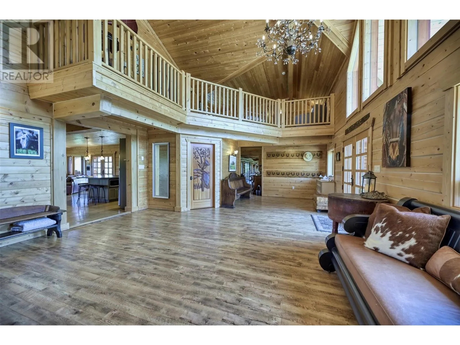 unparalleled style and luxurious comfort. With 7 bedrooms, 6 bathrooms, sleeping accommodations for 21, it provides ample space for entertainment. 2 kitchens cater to culinary enthusiasts & large gatherings alike. Equestrians will delight in well-appointed facilities, a barn, 10 stables, round pen, outdoor arena & fenced paddocks. The entire property is fenced and cross-fenced with rail & wire. The property surrounds 2 lakes, and touches 3 others, with additional marsh and waterways. The main lake is stocked with rainbow trout, offers exceptional fishing, complemented by a swim platform & dock for swimming, paddle-boarding. Extensive roads & trails wind through the landscape, inviting exploration on foot, horseback, or skis, catering to outdoor enthusiasts throughout the seasons. Renowned for its superb summers and picturesque winter days under clear blue skies, this property promises an unparalleled lifestyle blending luxury, natural beauty, and recreational opportunities in perfect harmony. Please see the listing agent site for more information. Imagine! (id:62650)
