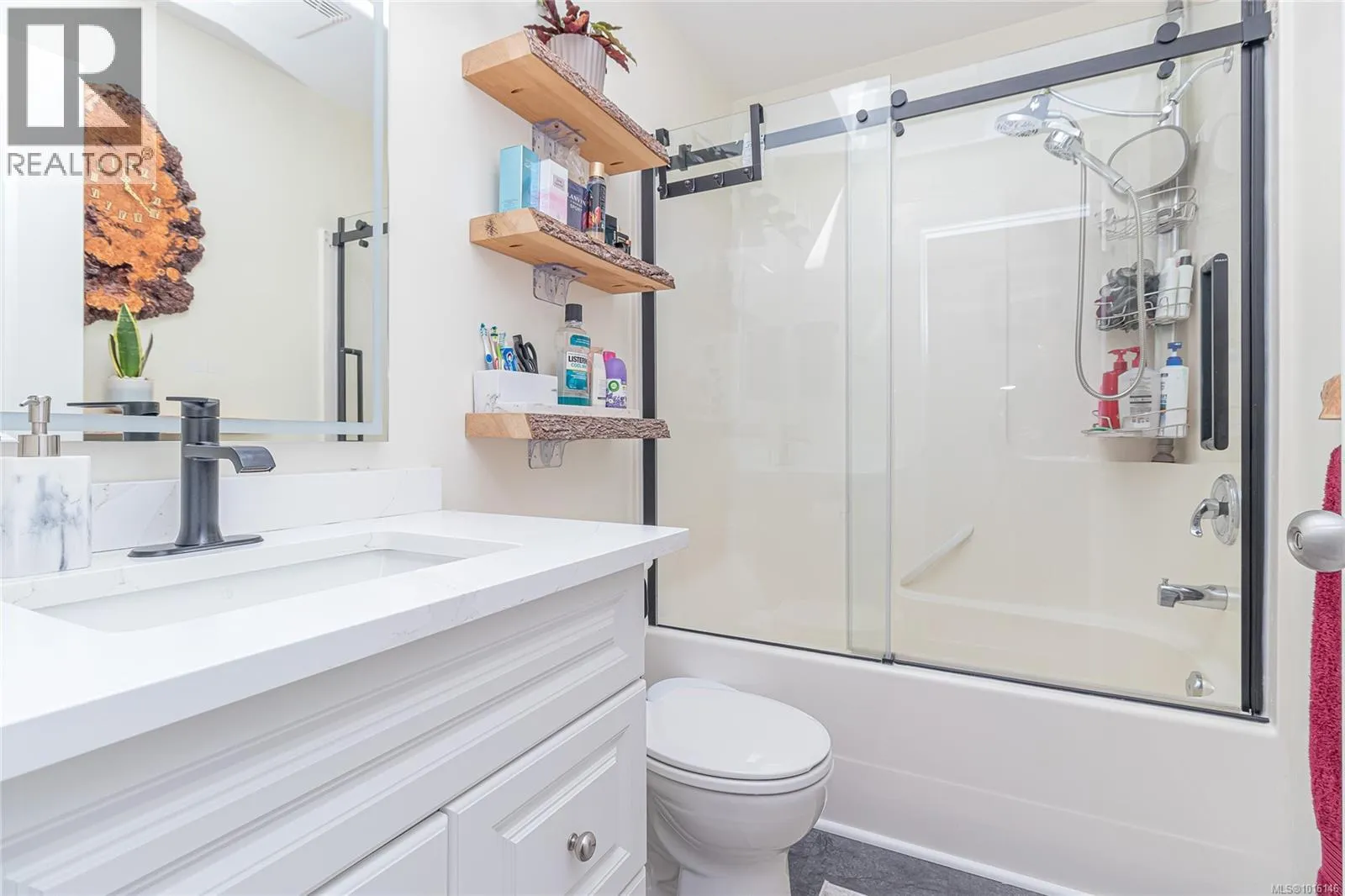 Welcome to Country Terrace – Where Nature, Comfort & Community Come Together! Tucked away on a quiet, no-through street that backs directly onto the Galloping Goose Trail, this beautifully maintained 4-bedroom, 3-bath home offers the perfect blend of privacy, nature, and convenience. The updated kitchen features elegant quartz countertops, restored cabinets, and a functional layout that connects seamlessly to a