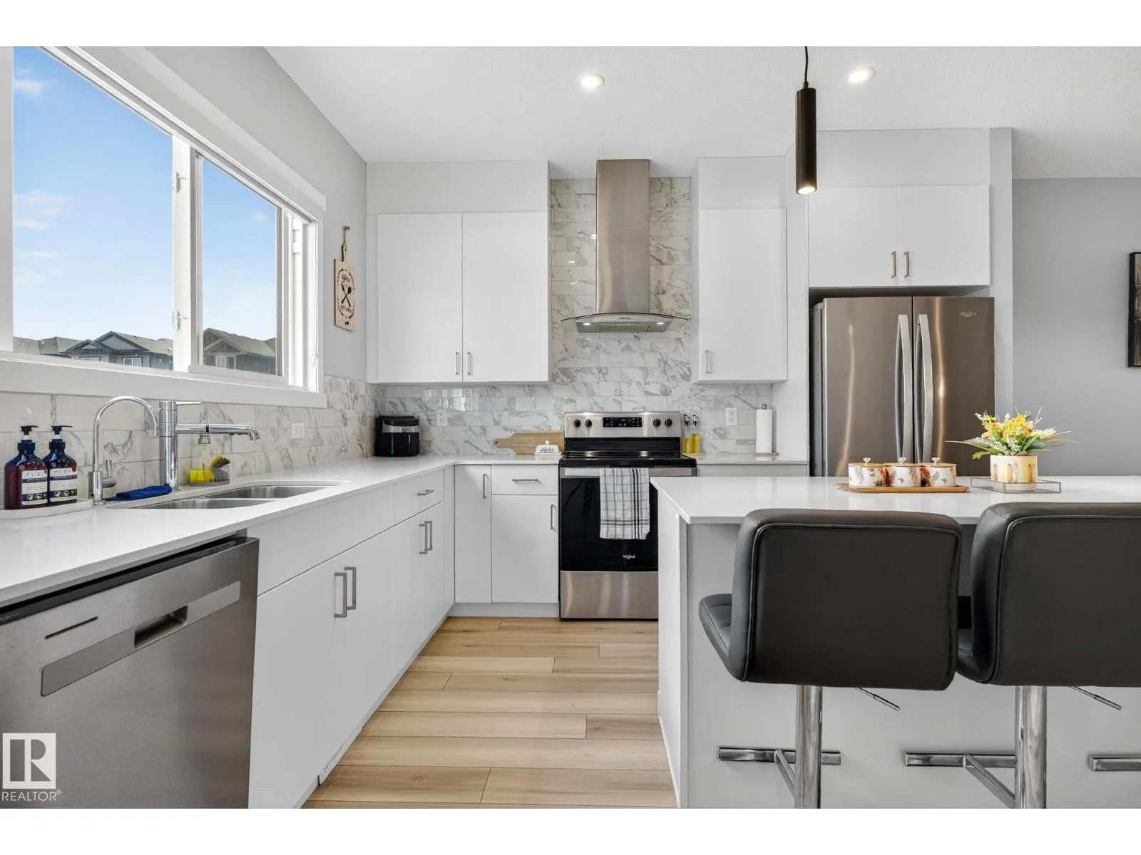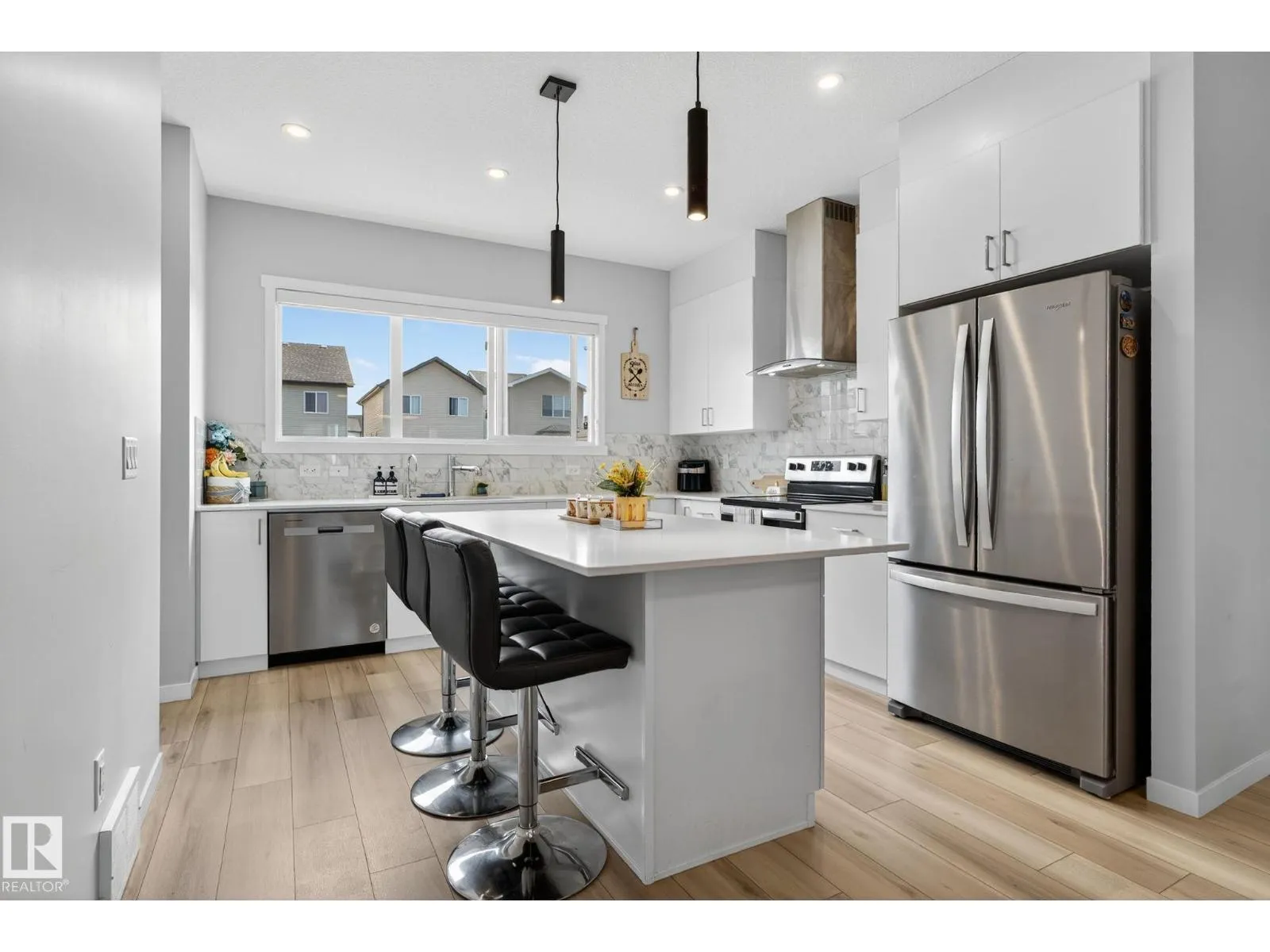 Welcome to this stunning single-family home that combines modern design with affordable luxury. Featuring luxury vinyl flooring throughout, upgraded cabinets, stylish lighting, and a sleek electric fireplace, this home offers both comfort and elegance. The open-concept main floor provides a spacious living area with a dining nook that flows into a large, beautifully finished kitchen. Upstairs, the oversized primary bedroom