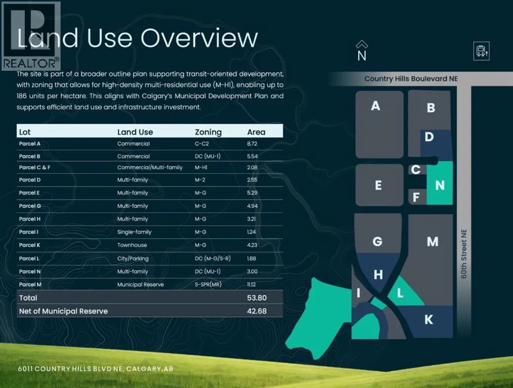 Click brochure link for more details. This property represents a rare and strategic opportunity for investors, developers, and infrastructure specialists to capitalize on Calgary’s northeast expansion. Located at 6011 Country Hills Boulevard NE, the site is positioned within one of the city’s most active development zones, surrounded by thriving master-planned communities such as Cornerstone, Skyview Ranch, and Cityscape. With subdivision