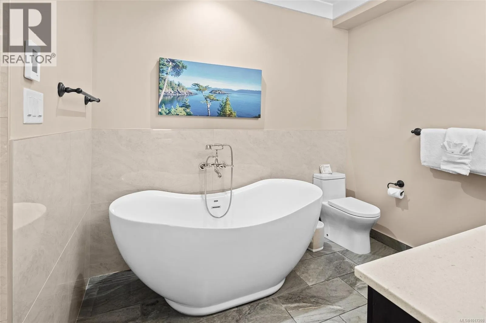 STUNNING VIEWS OVER THE SPARKLING WATERS OF JUAN DE FUCA STRAIT TO THE SNOW CAPPED OLYMPIC MTNS. One of the most desirable units in the development, thoughtfully positioned to maximize the ever-changing panoramic views, this stunning 2 bed, 2 bath, 1056sf (as shown on developer’s floor plan) condo located at Prestigious Sooke Point, a boutique size, luxury, resort-style oceanfront complex,