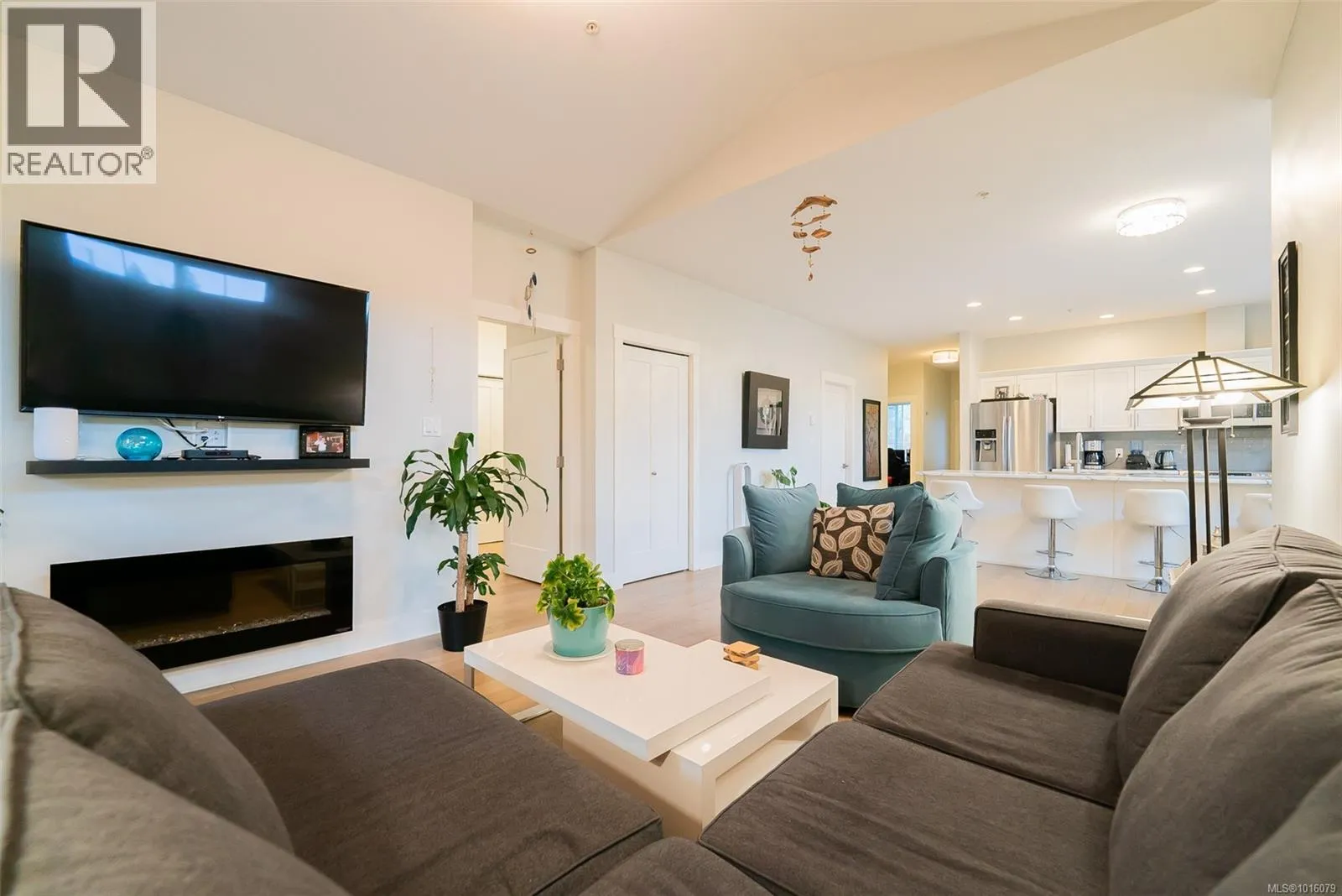 Pet-friendly & perfect for first-time buyers! Top-floor unit with soaring 10′ vaulted ceilings and high-end finishes throughout. Bring your furry friend—Strata allows 1 dog any size and/or 1 cat (or 2 cats)! This 2 bed + den layout offers flexibility for a home office or gym. Entertain in style with an oversized 11′ island, stainless appliances, and open-concept kitchen/living space.