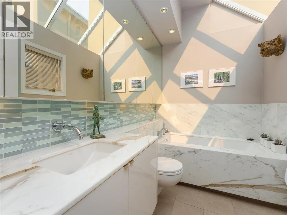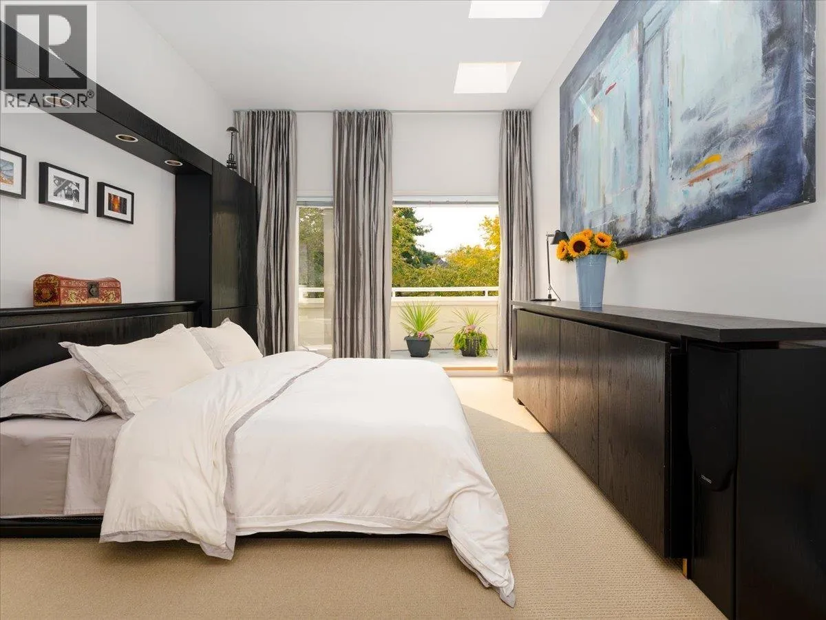 Welcome to the Kits Point half duplex you’ve been waiting for. The bright and airy main floor boasts 10′ ceilings, skylit dining area, a wood-burning fireplace, and French doors to a private, sun-drenched south facing patio. Warm, tungsten halogen lighting and solid oak flooring complete the space. The open kitchen features Sub-Zero and Bosch appliances, gas cooktop, and a one-piece