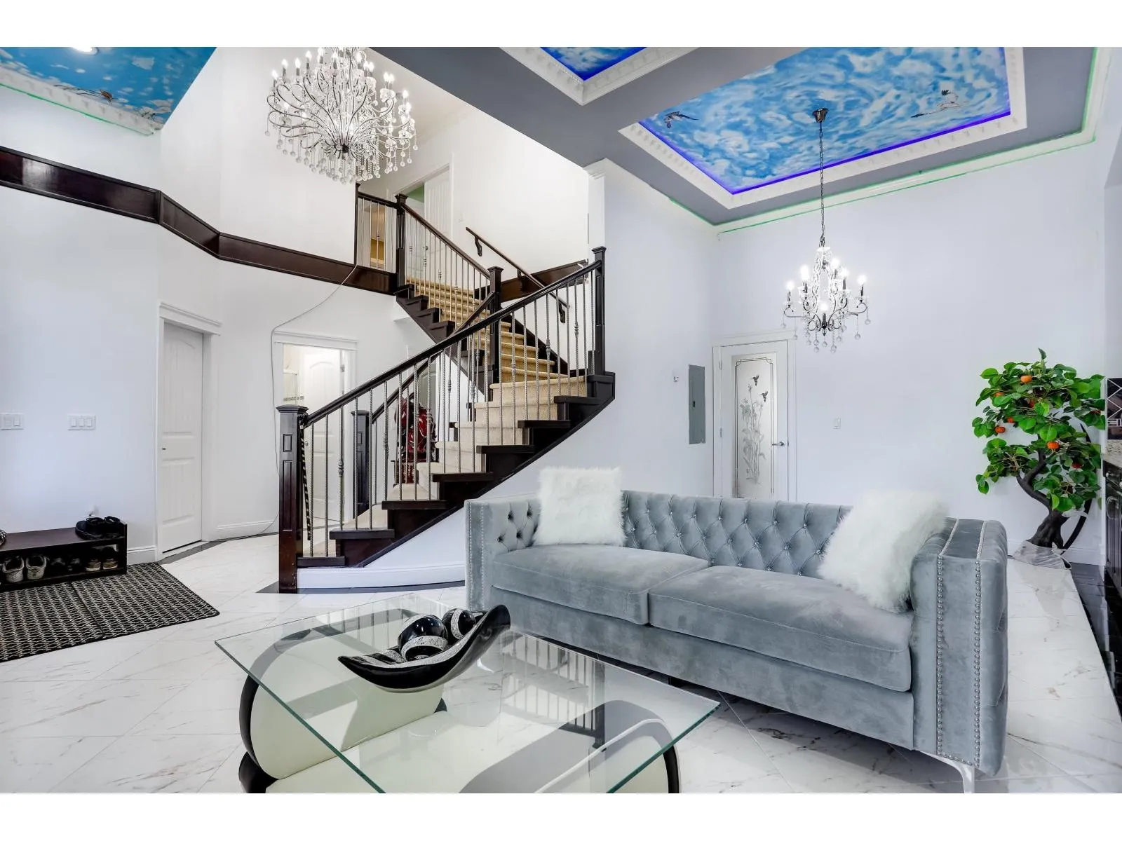 This stunning custom-built home combines exceptional open Layout with elegant design. Bright, open-concept living spaces feature high ceilings, radiant heating, and premium finishes. The main floor offers a full bathroom and a versatile office that can serve as a bedroom, plus a gourmet kitchen with a spacious spice kitchen and ample cabinetry. Upstairs, four generous bedrooms include a primary with