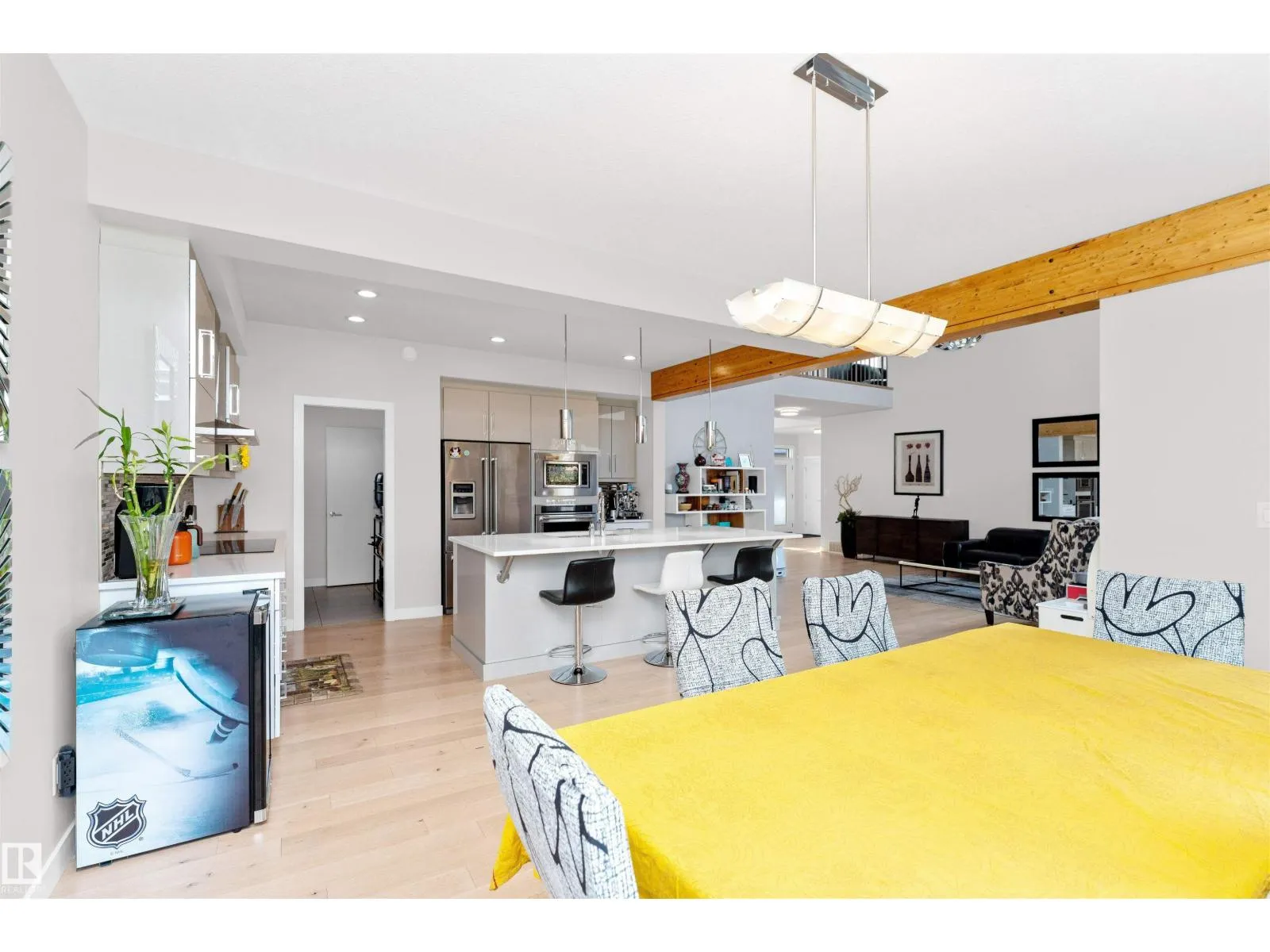 This Former Perry Showhome in Magrath Heights offers 4233 sq. ft. of total living space, 5 bedrooms, 3.5 baths, and a Triple Tandem attached garage with Tesla Charger. The grand entrance greets you with a soaring two-story ceiling that flows through the foyer and living room. The main floor features a spacious den, a stunning great room with large bright