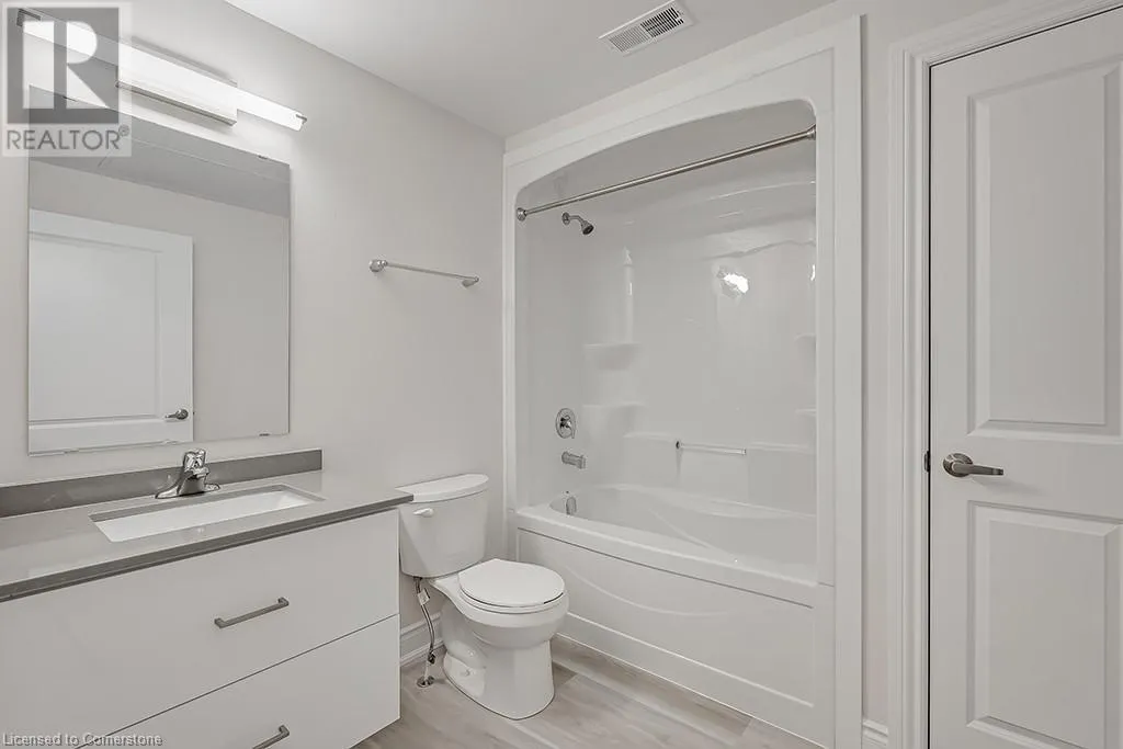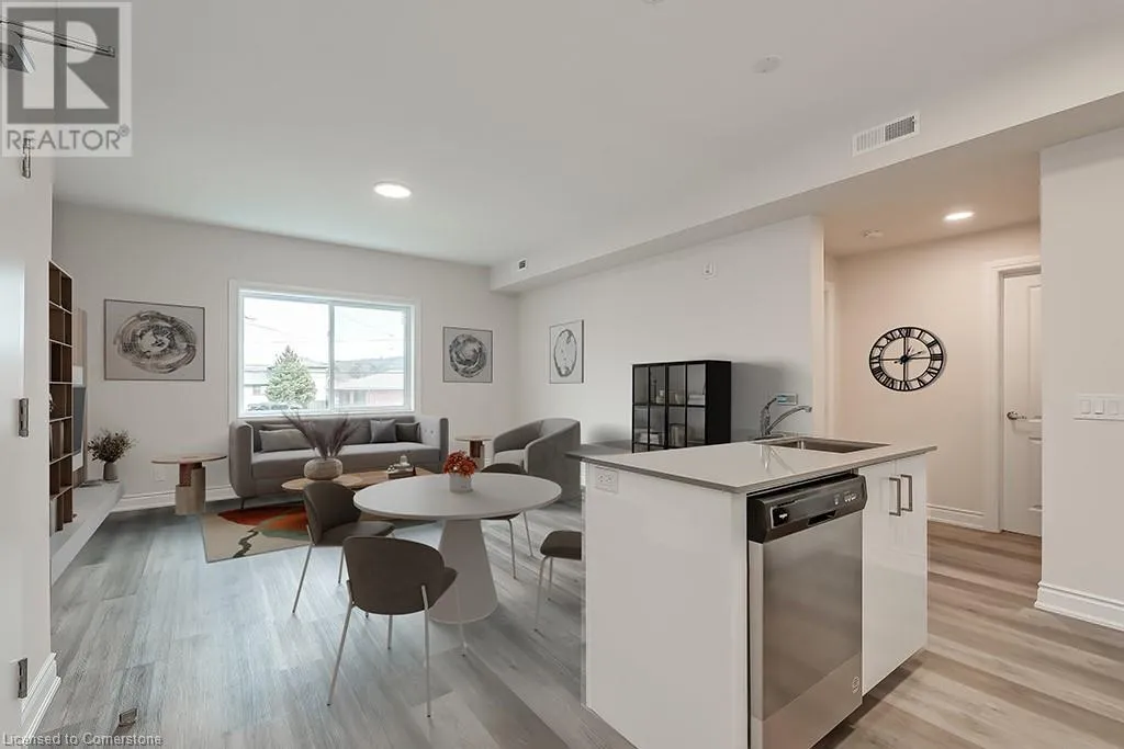 Be the first to live in this gorgeous 877 square foot open concept, 2-bedroom 1 bath unit in Stoney Creek. Beautiful modern finishes include vinyl flooring, stainless steel appliances, quartz counter tops, high ceilings, and in suite laundry. The unit includes one parking space (#24) and the BBQ picnic area, bike storage and visitor parking all make this boutique condominium