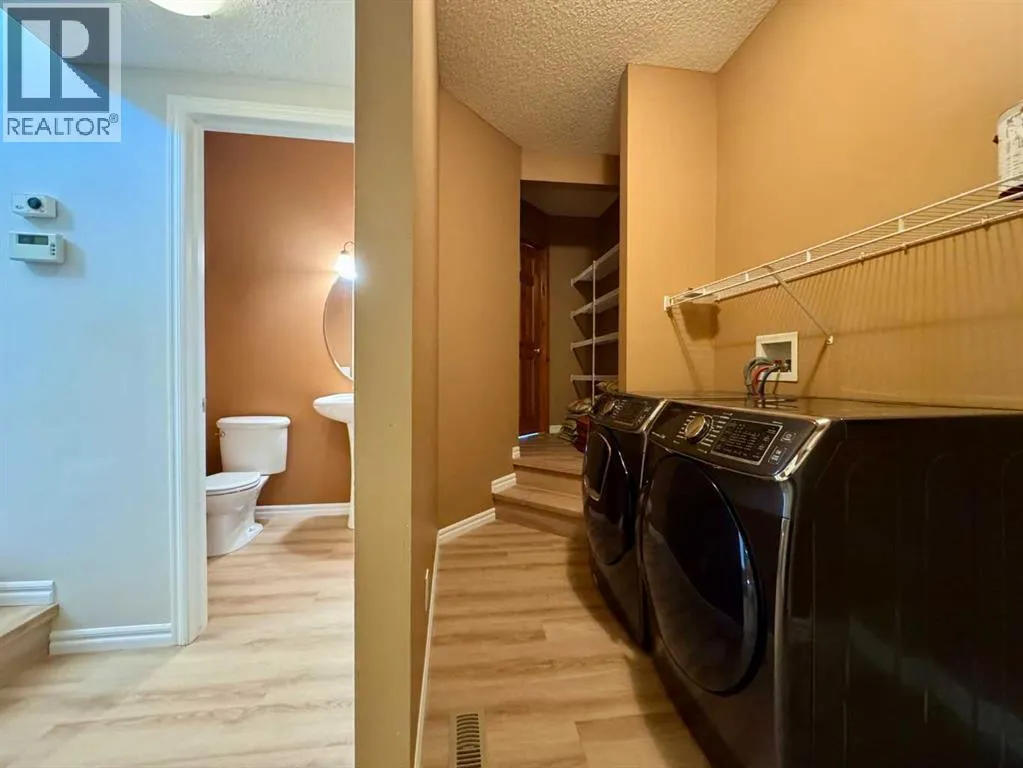 +"PublicRemarks": "Renovated 3 bedroom 2.5 bathroom detached house in a quiet community, offering over 2500 sq ft of living space. In addition to the living room, there is a large, bright bonus space on the upper level with high ceilings. The upper level features great family layout, including a primary bedroom with large ensuite bathroom and walk in closet, along with two other bedrooms and another full bathroom. Recent renovations include new flooring, quartz countertops, sinks, faucets, interior paint, and stove. Enjoy the private fenced backyard, open plan kitchen and large finished basement. Park in the double car garage or the two car driveway. The property backs onto path leading to a playground. Easy access to highway 1A and Calgary, and a short drive to the mountains. (id:62650)"