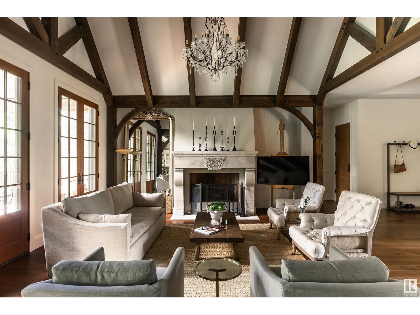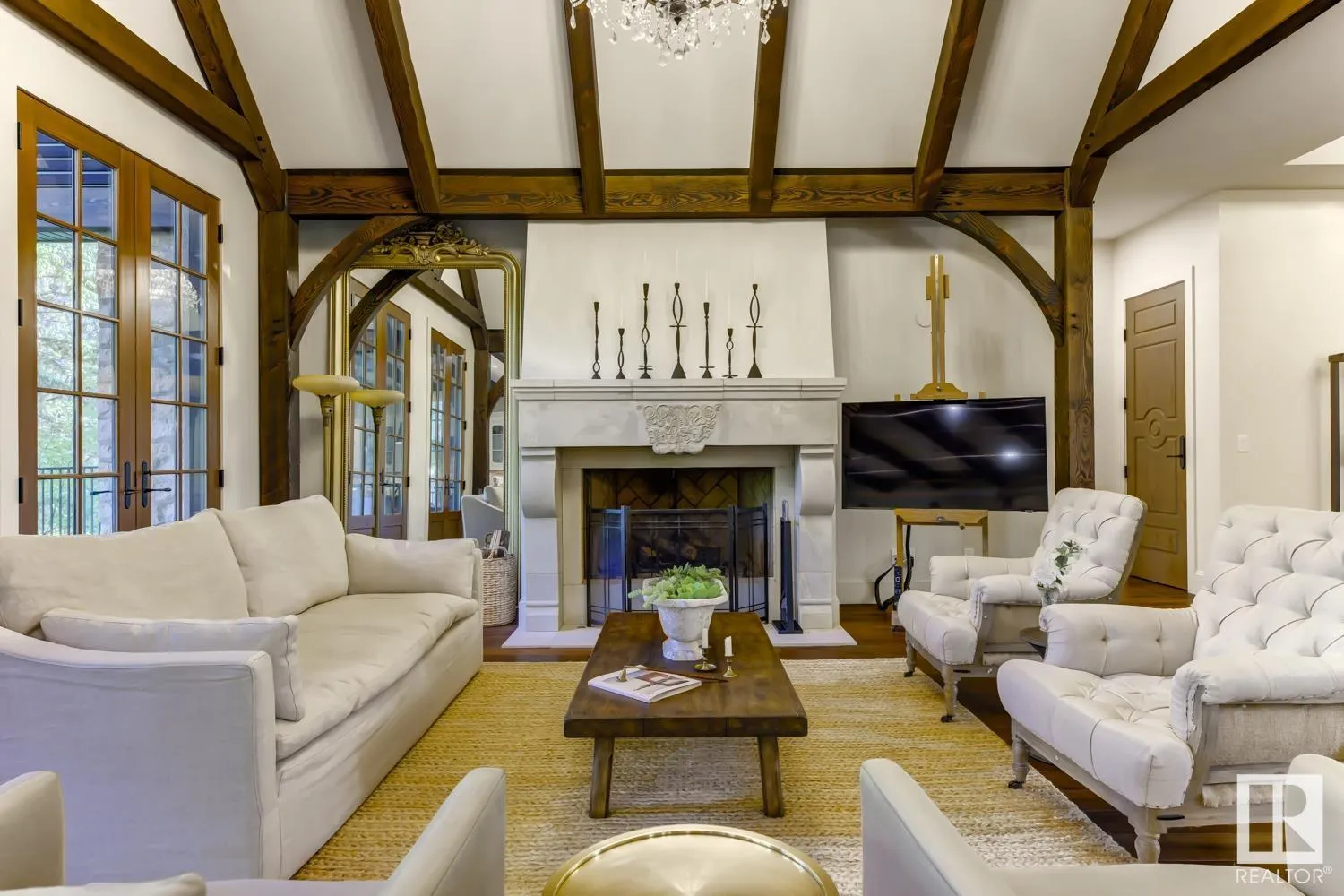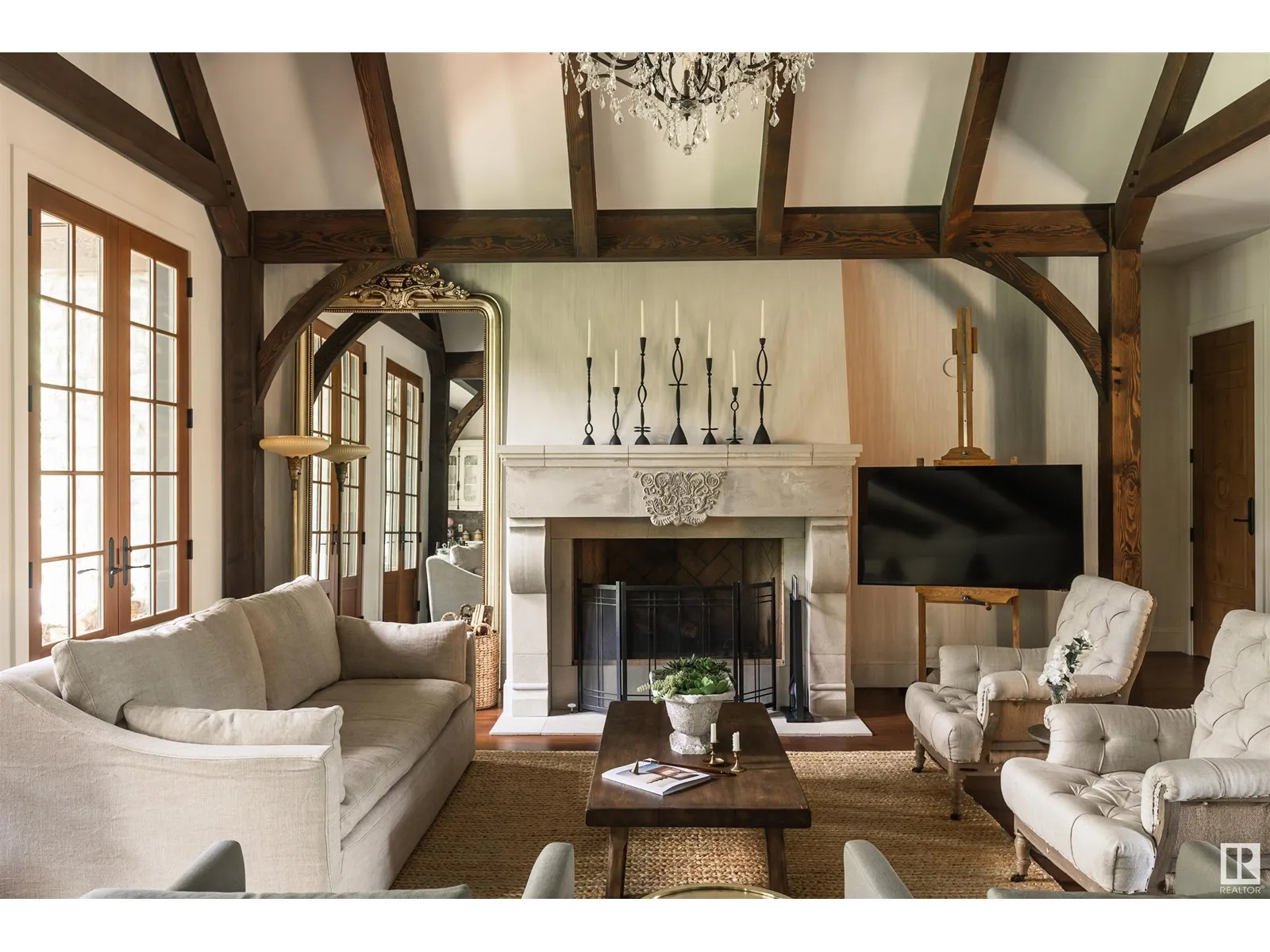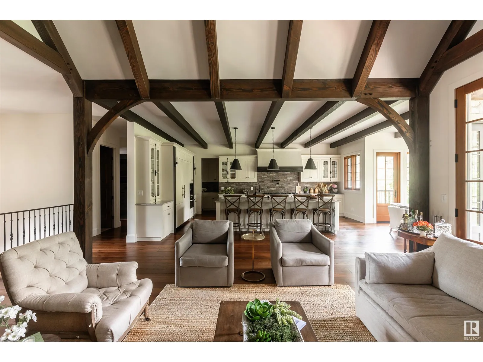 Reminiscent of the stone farmhouses of Burgundy France, experience elegant modern living paired w/ historical charm & exquisite European influence in a private, picturesque setting w/ this one-of-a-kind, executive estate bungalow, nestled on two meticulously landscaped acres in Sturgeon County, mere minutes from both Edmonton & St. Albert. Crafted by Heredity Homes & designed by Nadia Li of Go For