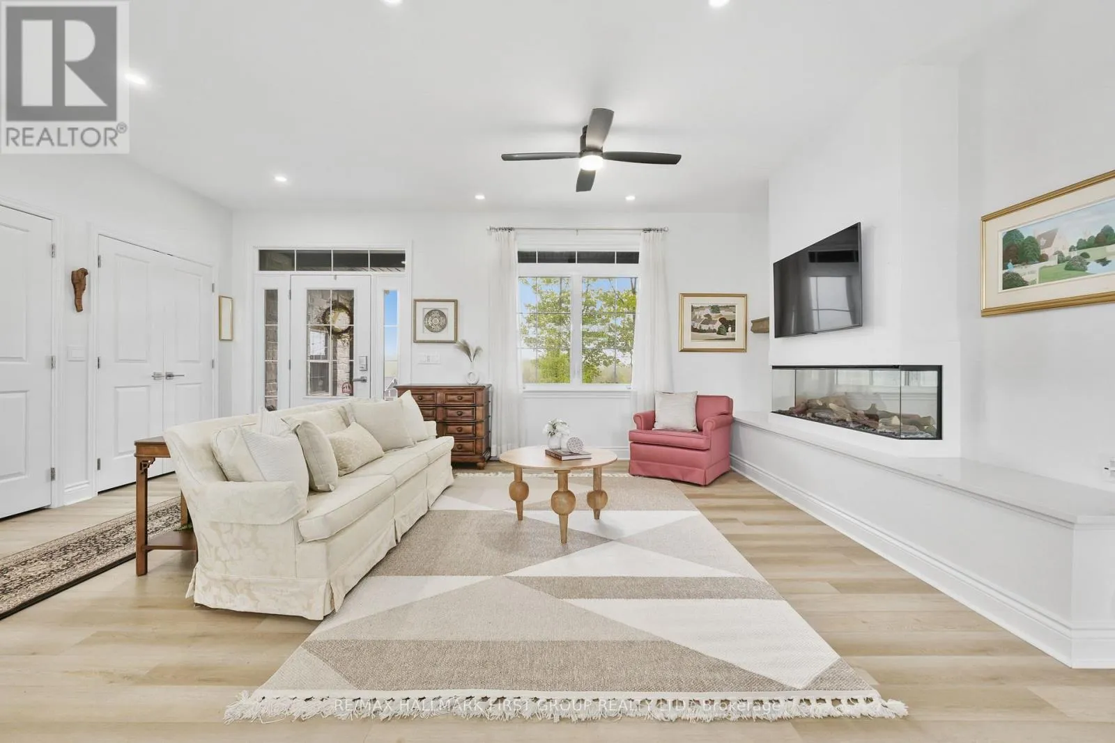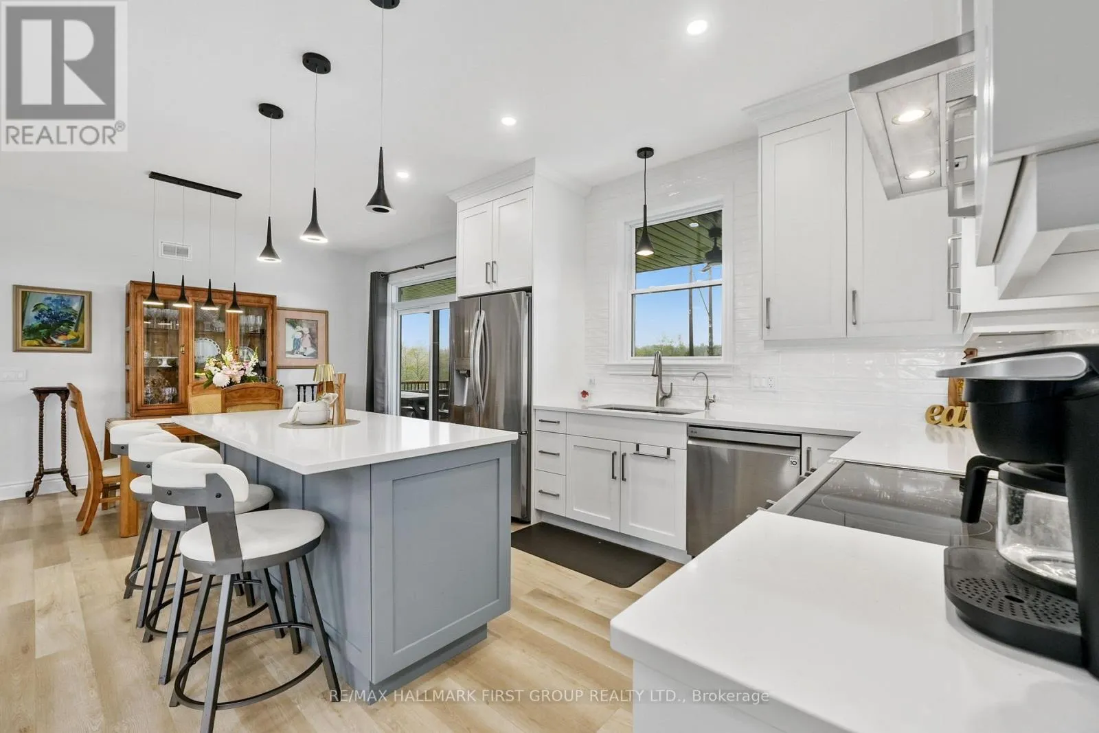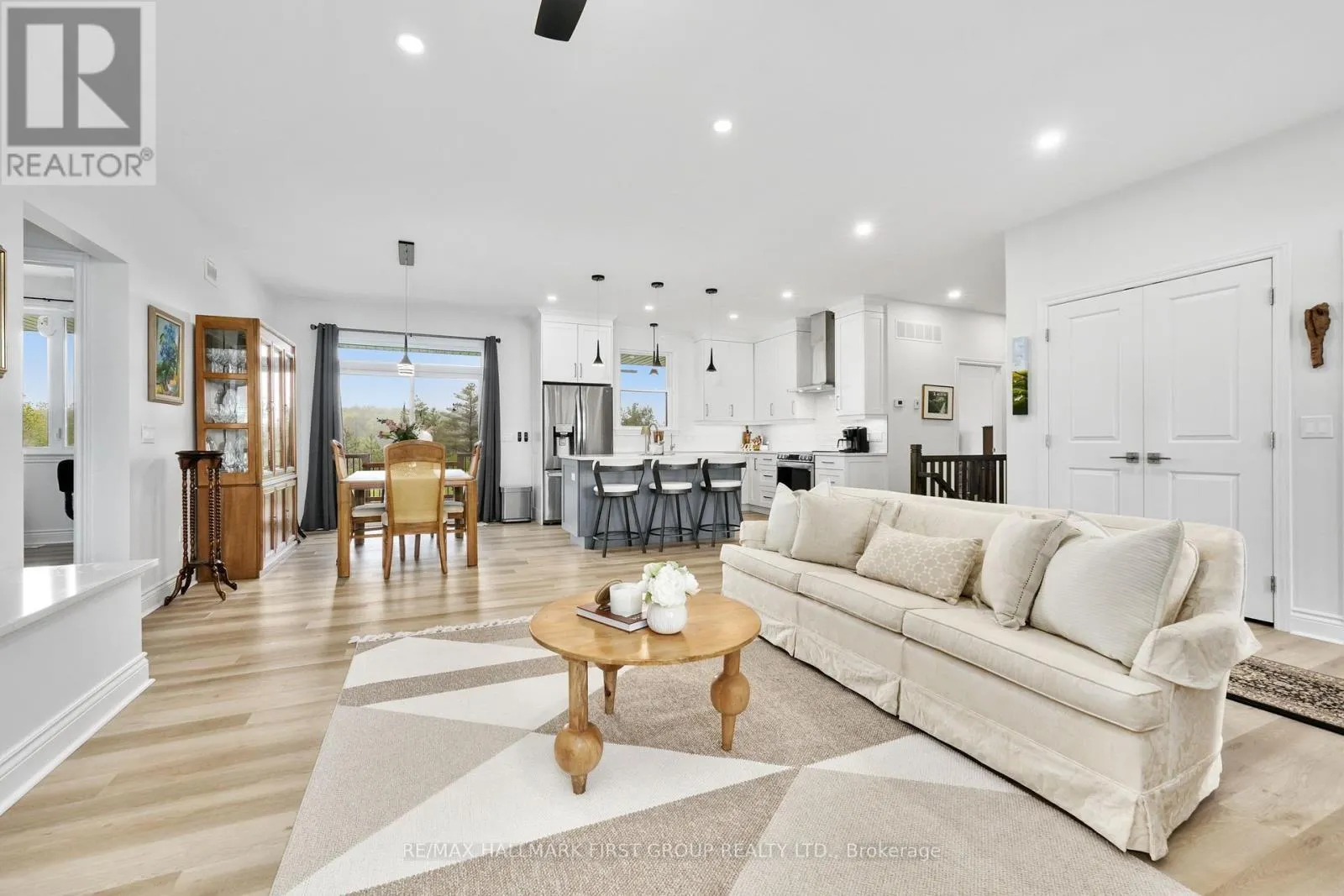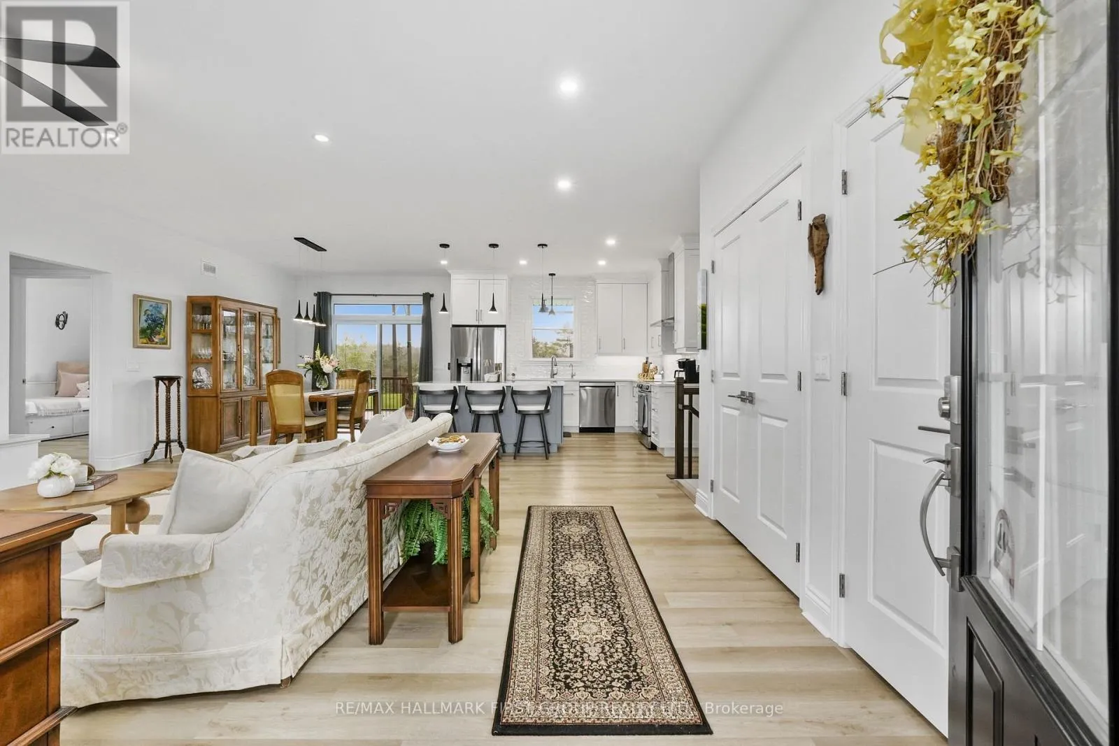This newer construction home is a stunning blend of modern design and rural tranquillity. Positioned on a generous 2.5-acre lot, the property boasts impressive curb appeal with a contemporary exterior, covered front porch, perennial gardens, and an attached double bay garage. Step into a carpet-free, open-concept living space designed for functionality and style. Dual front hall closets offer practical storage
