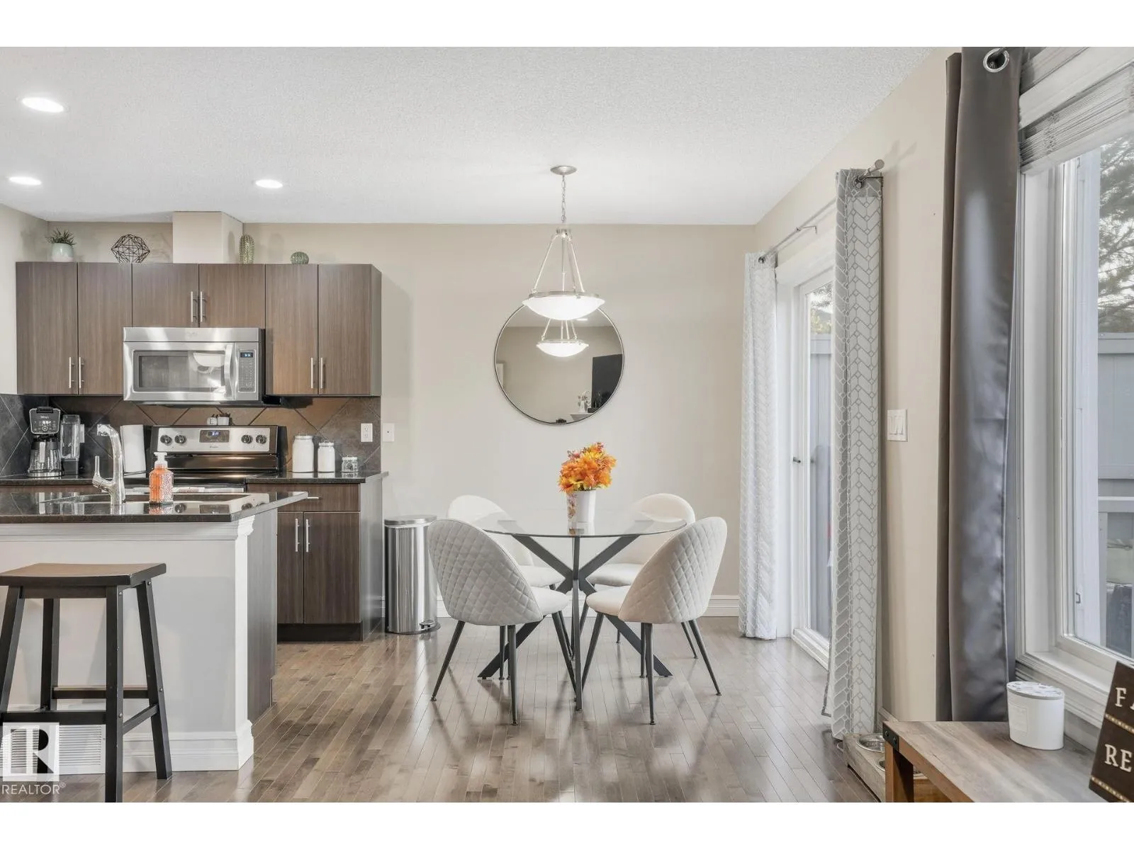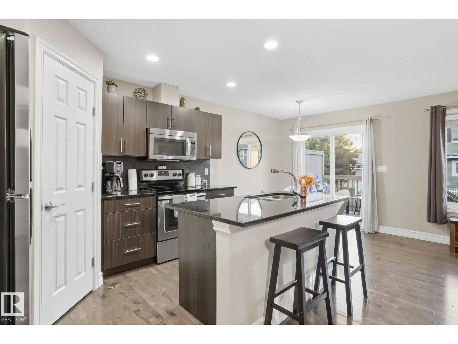 Step into this impeccably cared-for 2-storey half-duplex, perfectly situated in a well-run Sherwood Park complex with low condo fees. This 3-bedroom, 2.5-bath home welcomes you with an open-concept main floor, ideal for gatherings. The sleek kitchen features granite countertops, a corner pantry, stainless steel appliances, and a large island, blending seamlessly into the dining nook and great room. There, a