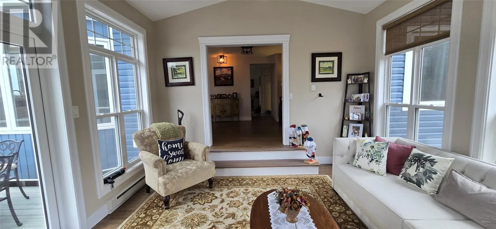 Welcome to this exquisite custom executive home, nestled on a mature waterfront lot that offers both tranquility and stunning views. Centrally located, this property is just minutes away from shopping, recreational facilities, schools, and a hospital, making it the perfect blend of luxury and convenience. Step inside to discover a beautifully designed sunroom, featuring a cozy wood-burning fireplace that creates