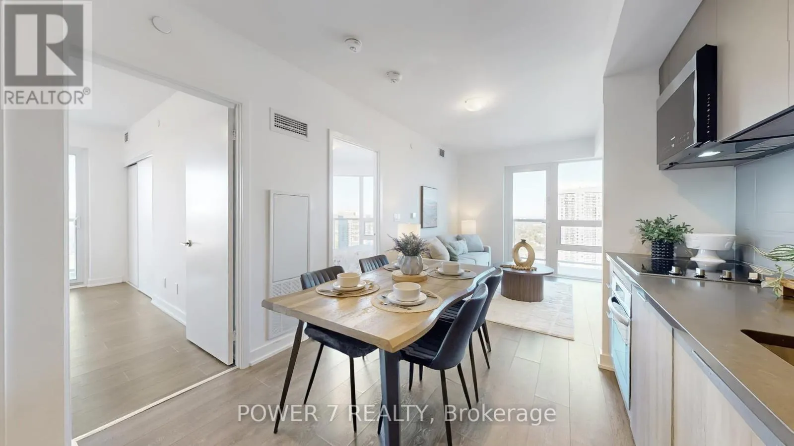 Welcome to 2033 Kennedy Rd #3605 a stylish 2-bedroom, 2-bath corner unit with breathtaking unobstructed North-East views! This bright, open 733 sq ft residence features a large corner balcony, allowing you to soak in stunning vistas from both the living room and the spacious master bedroom, each with direct walkouts.Enjoy a contemporary open-concept kitchen with sleek designer finishes and
