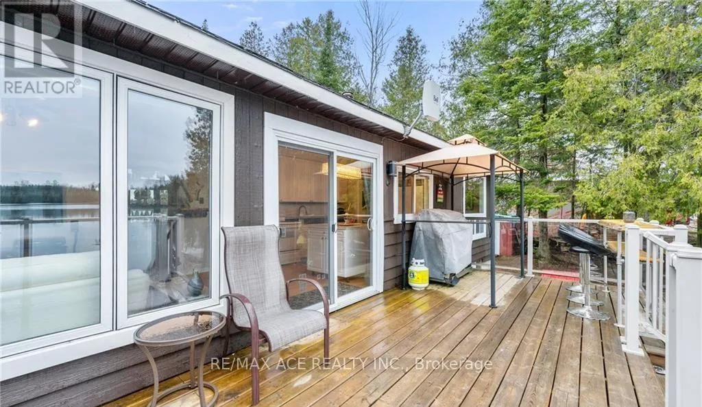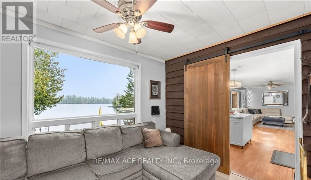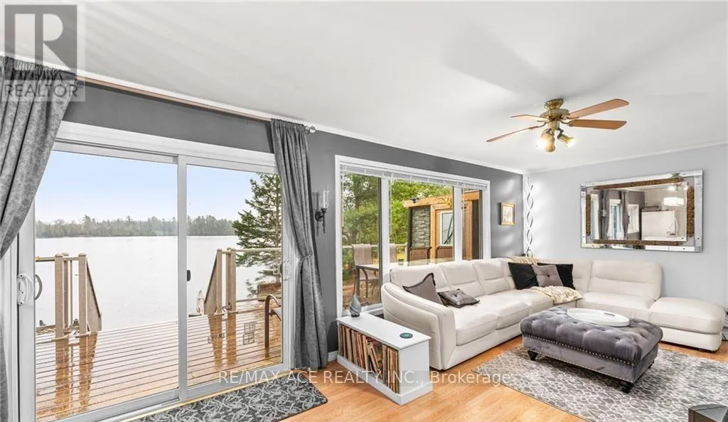 One-of-a-kind four-season waterfront home or cottage offering stunning lake views and year-round enjoyment. Featuring a soft sand shoreline with clean, spring-fed water, perfect for swimming and relaxing. The level lot is ideal for outdoor games, and the spacious deck provides easy access to the water and deep docking for boating or fishing. Nestled on a private half-acre surrounded by mature