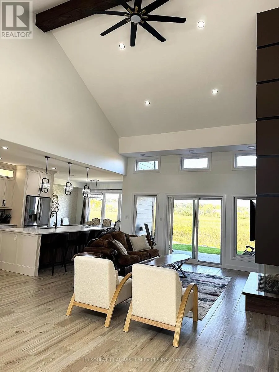 +"PublicRemarks": "Welcome to picturesque Swan Lane, where luxury meets tranquility. It is located in a cul-de-sac, on a large premium & private waterfront lot. Wake up to the warmth of the morning sunrise on the front porch and unwind with breathtaking sunset views from the back patio. It is beautifully landscaped with Kentucky bluegrass, an assortment of trees, shrubs, lighting & walkways and is equipped with a B-hyve irrigation system. It is heated with a Navien combie-boiler for radiant in-floor heating throughout the main floor/garage and a furnace to heat the second floor. It is also equipped with central air, a central VAC and an HRV. It has a newly paved driveway & a large double wide EV-ready garage. The master is on the main floor and the 2 bedrooms are on the second floor. On this level, there is large bonus room that could easily be converted into a secondary master. The living boasts a one-of-a-kind accent wall, 18' high ceilings, a modern 50" double glass, 3-sided gas fireplace with driftwood logs & a 72" eight blade fan. The kitchen features soft close cabinetry, built-in stainless-steel appliances, a pot filler, 1 1/4" quartz countertops and a walk-in pantry with a bar fridge. The peace and serenity that this property offers, along with seclusion, nature and wildlife, are sure to make a lasting impression. Words cannot justify this gem of a property, as this is a once in a lifetime opportunity. Let the end of our dream, be the beginning of yours. Vacant land condominium. Monthly maintenance fee of $170.26 covers the maintenance of common areas. *For Additional Property Details Click The Brochure Icon Below* (id:62650)"