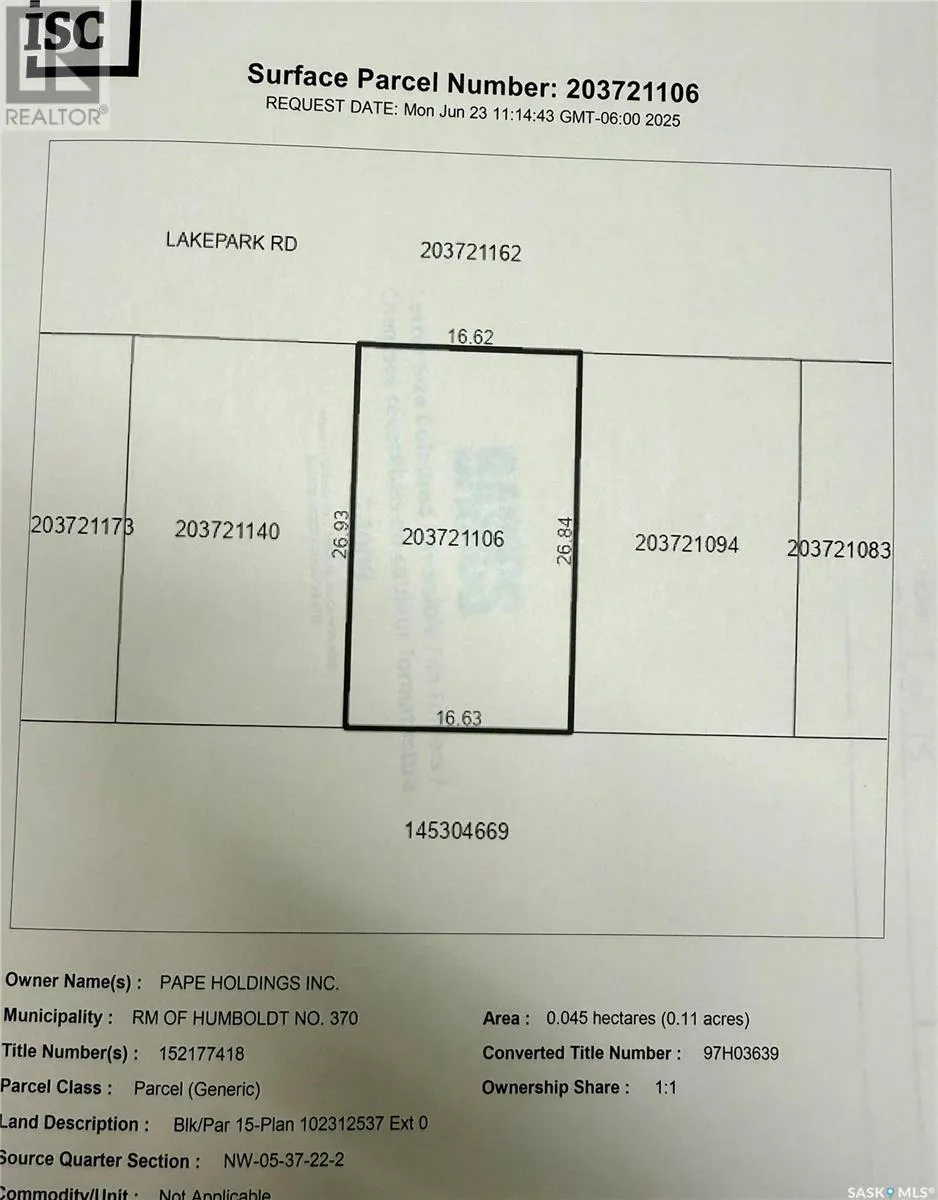 Enjoy lake living on this lot. The Seasonal lot is .11 acre. Culverts and driveways have been installed and trees planted. Lot has 100 amp power to property line. Buyer to sign Servicing Agreement with Pape Holdings Inc.. Buyer responsible for utility hookup costs. Buyer is responsible for septic holding tank cost and install. Buyers to consult with RM of