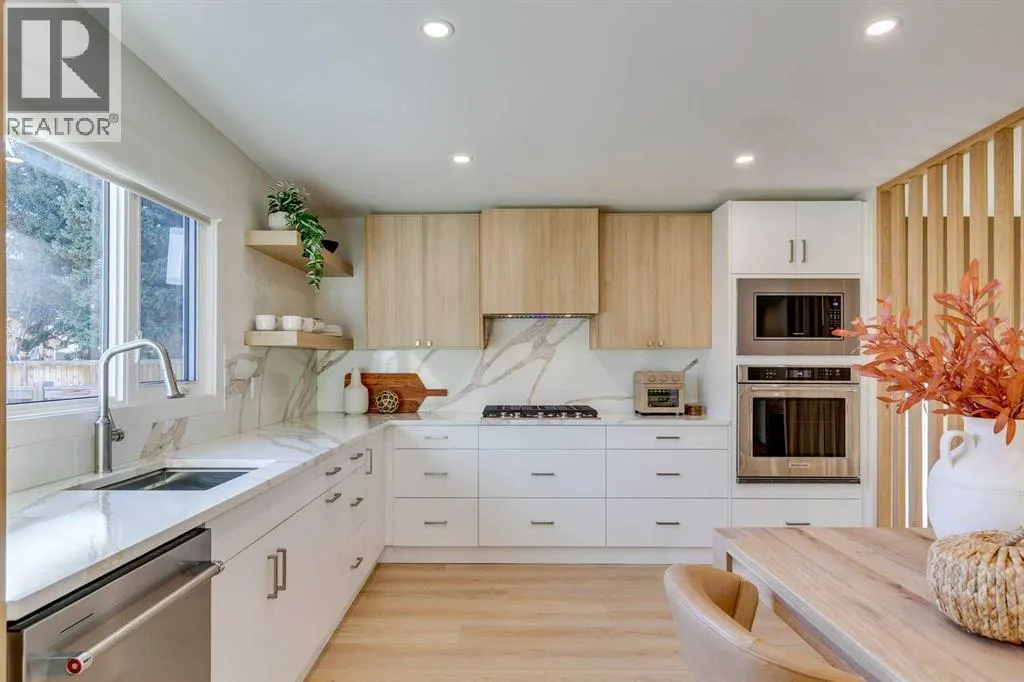 Fabulous, completely remodeled + re-designed home, completed this year. Featuring stunning open spaces + well-balanced room sizes throughout. The main level offers a warm inviting great room with wood-burning fireplace, spacious informal dining area + a chef’s kitchen with extensive cabinetry, dedicated coffee station + an open eat-in kitchen which completes this space.Beautiful luxury vinyl plank flooring runs throughout the
