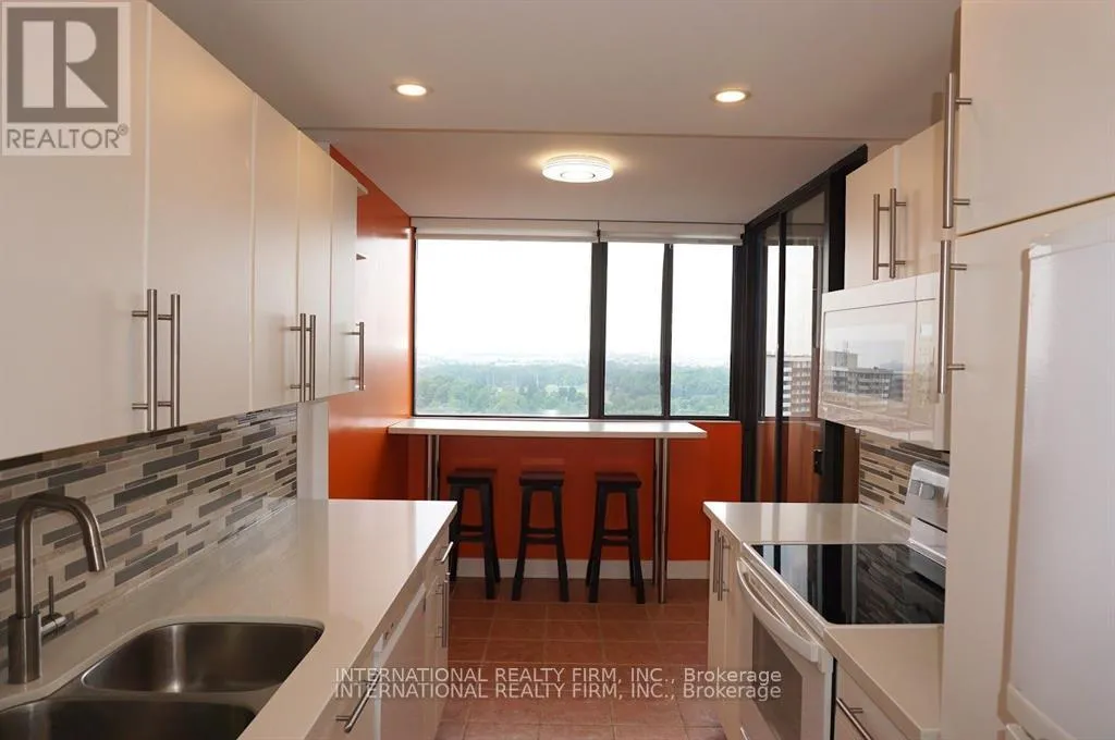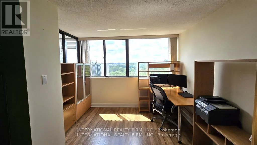 This is Spacious 2 Bed, 2 Bath, Plus Den Condo With a Stunning View Overlooking G Ross Lord Park . Renovated, Move in Ready, Generous sized Living/Dinning Area, New Kitchen Quarts countertop, New laminate Floor throughout , Well Maintained Building on a Quiet Street With Great Amenities such as Outdoor Pool, Gym, Sauna, Party Room. All Utilities and Rogers Tv