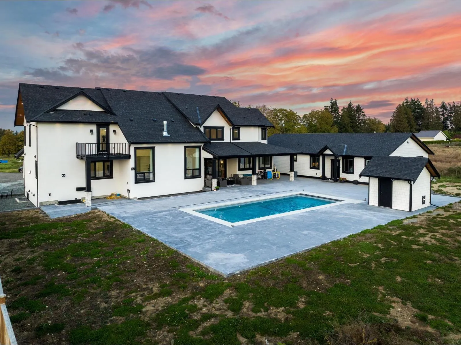4.63 ACRES WITH ESTATE HOME AND MULTIPLE BUILDINGS. A long, gated driveway leads to an 8,150 SQ/FT custom-built estate home (2024), perfectly positioned for privacy and valley views. This luxurious home features 9 bedrooms, most with walk-in closets and private ensuites (6 bathrooms total), two grand staircases, open-concept living, a chef’s kitchen with walk-in fridge, and a recreation room with