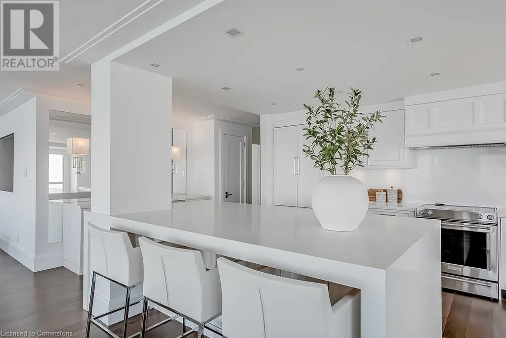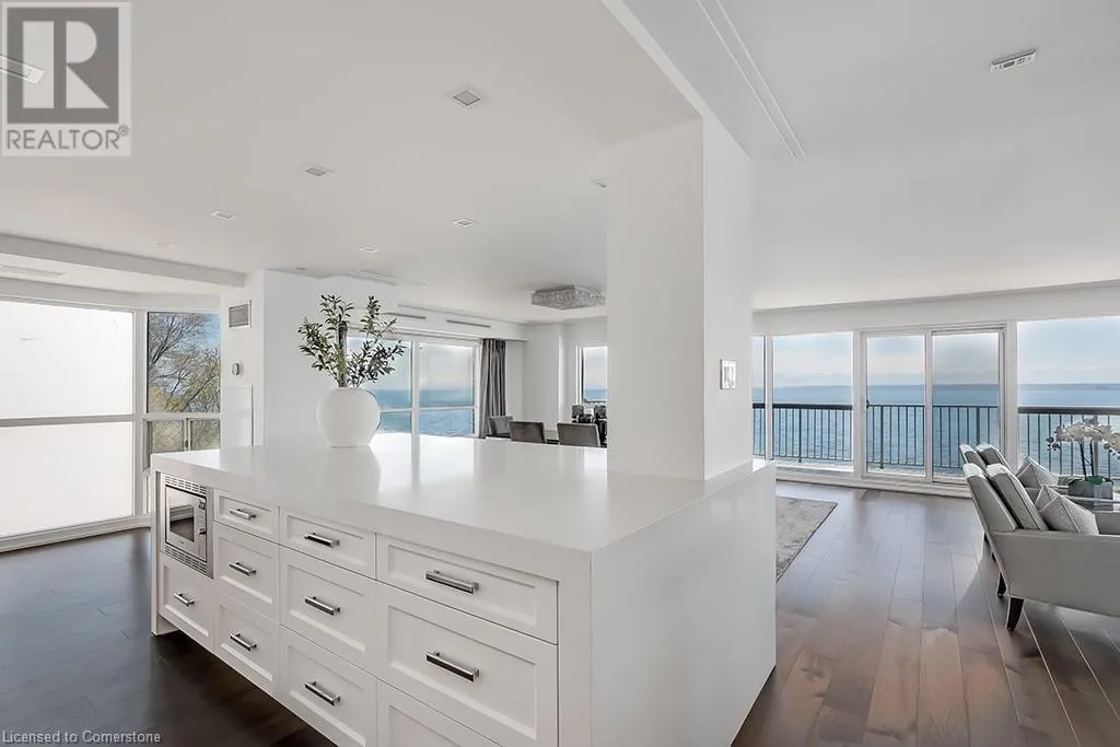 Discover a unique chance to own a beautifully renovated 2,000 sq. ft. residence in one of Burlington’s most sought after buildings on Burlington’s waterfront, just steps from the vibrant downtown core. This elegant 2 bedroom, 2.5 bath unit offers breathtaking south facing views of the lake, the Pier, and even Niagara Falls on a clear day. Every inch of this