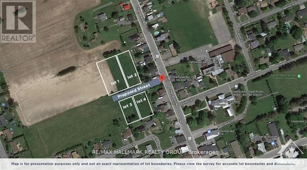 Ready to consider building? This building lot in the heart of charming Bourget is the one for you! No rear neighbours and directly across from the french elementary school. Potential to build up to 20 unit residential building on this lot. Centrally located lot within walking distance to all the villages amenities such as schools, library, shops, grocery store and