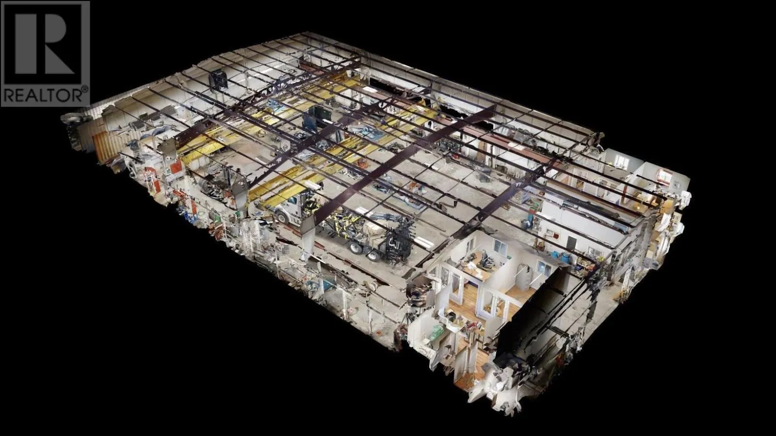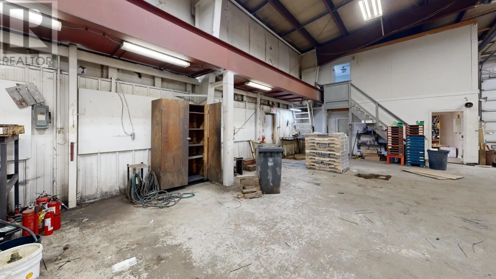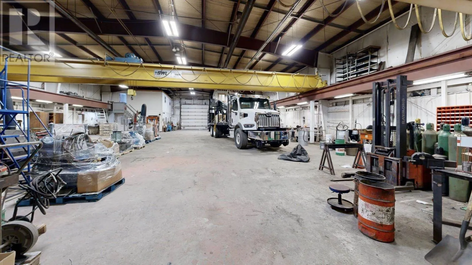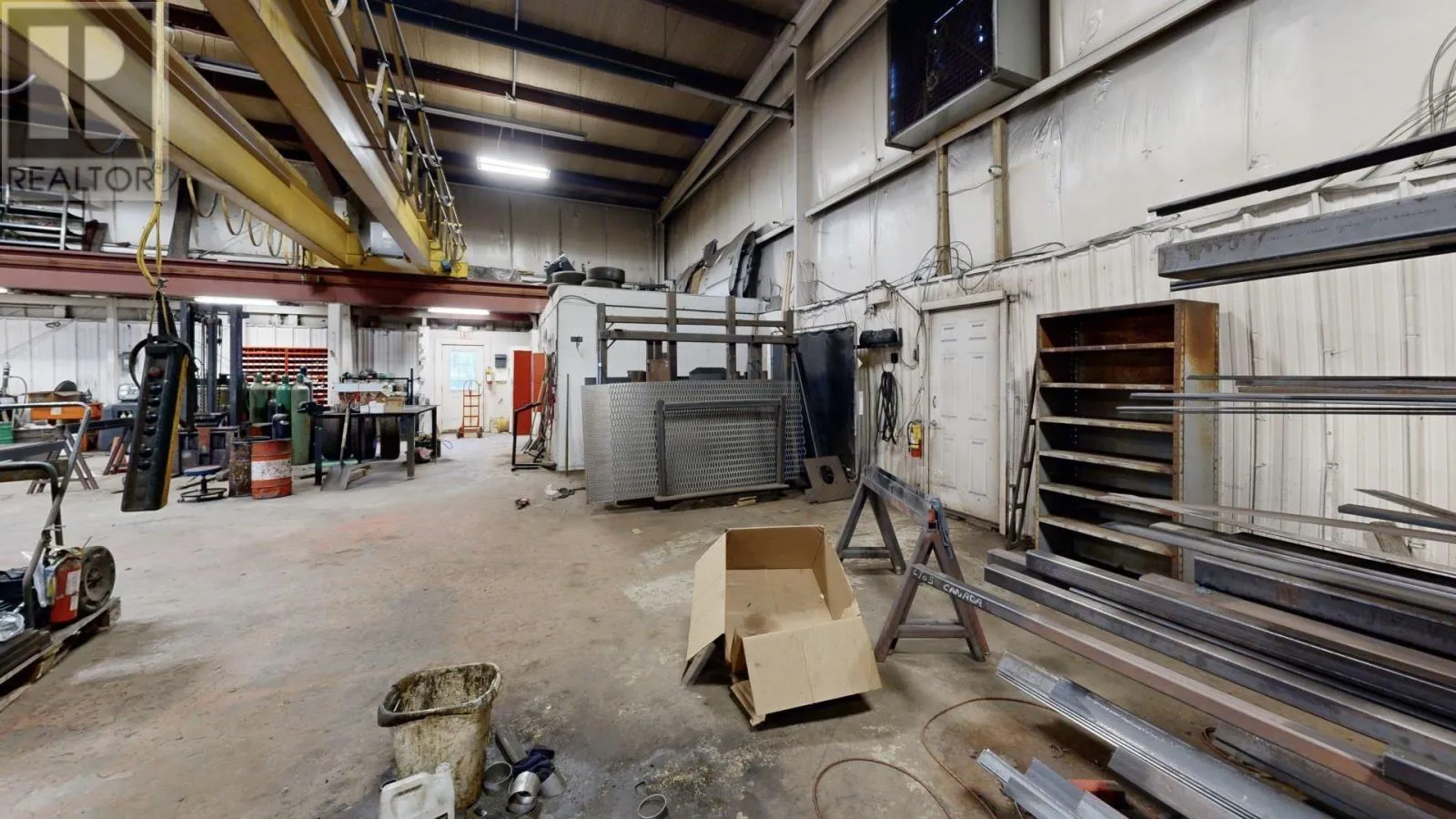 Large industrial/commercial building with 2 washrooms, 10 offices, a kitchen, 2 washrooms, a shower, laundry area and featuring two 7 ton overhead cranes with 6,840 sq feet of industrial operations space and a high bay roll up door for level access to the receiving area. Serviced with municipal water/sewer, natural gas and phone/internet on a year round municipal road. Building