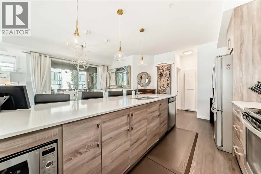 Welcome to this stunning, ONE-OF-A-KIND, two bedroom + den, two bath, two titled premium side by side parking stalls, NW facing, prestigious Calligraphy, Westman Village home. This home SCREAMS RARE, LUXURY, SOPHISTICATION, UNIQUE. This Original owner home boasts over 1045 sq.ft of indoor living space. You can enjoy relaxing or entertaining on your covered wrap-around 600 sq.ft.