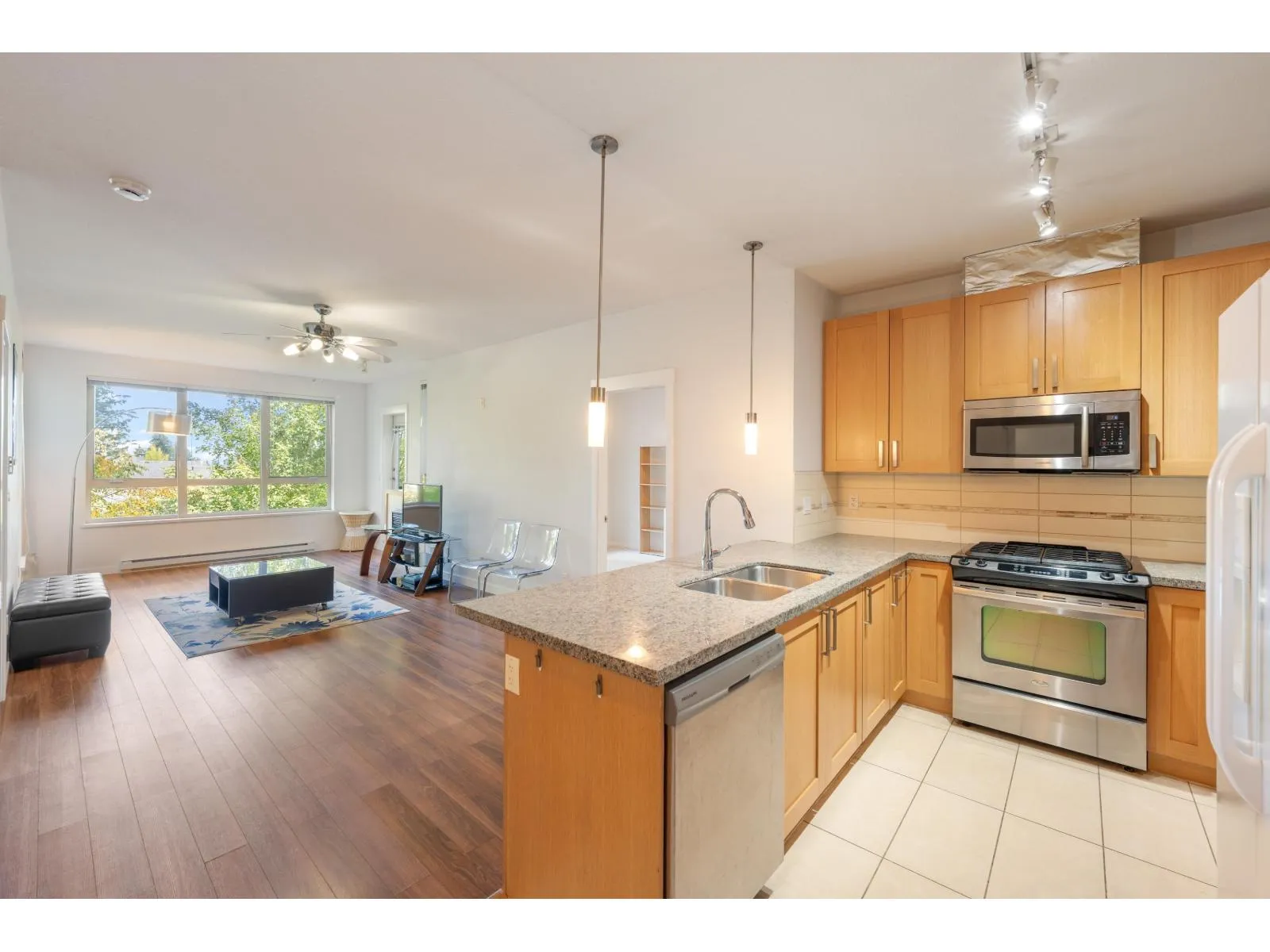 Enjoy stunning views of the North Shore Mountains from famous developer Polygon, this bright and spacious upper unit featuring an open layout, granite counters, stainless steel appliances, and soaring ceilings. Perfectly located within walking distance to shopping, southridge private school,transit, and big box stores, this well-managed complex offers resort-style amenities including a swimming pool, hot tub, fitness centre, children’s play