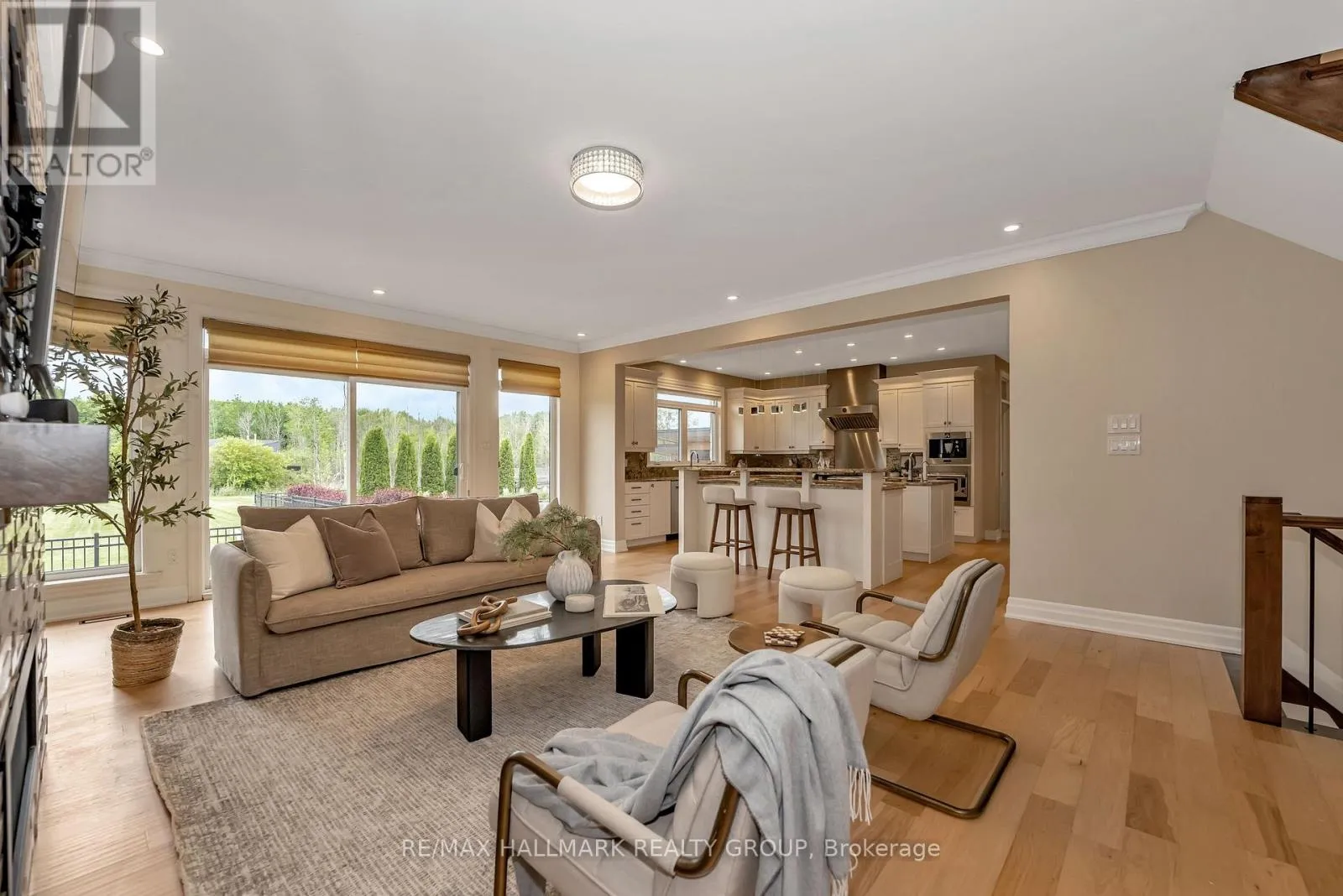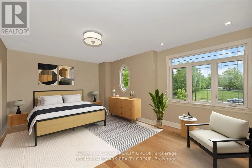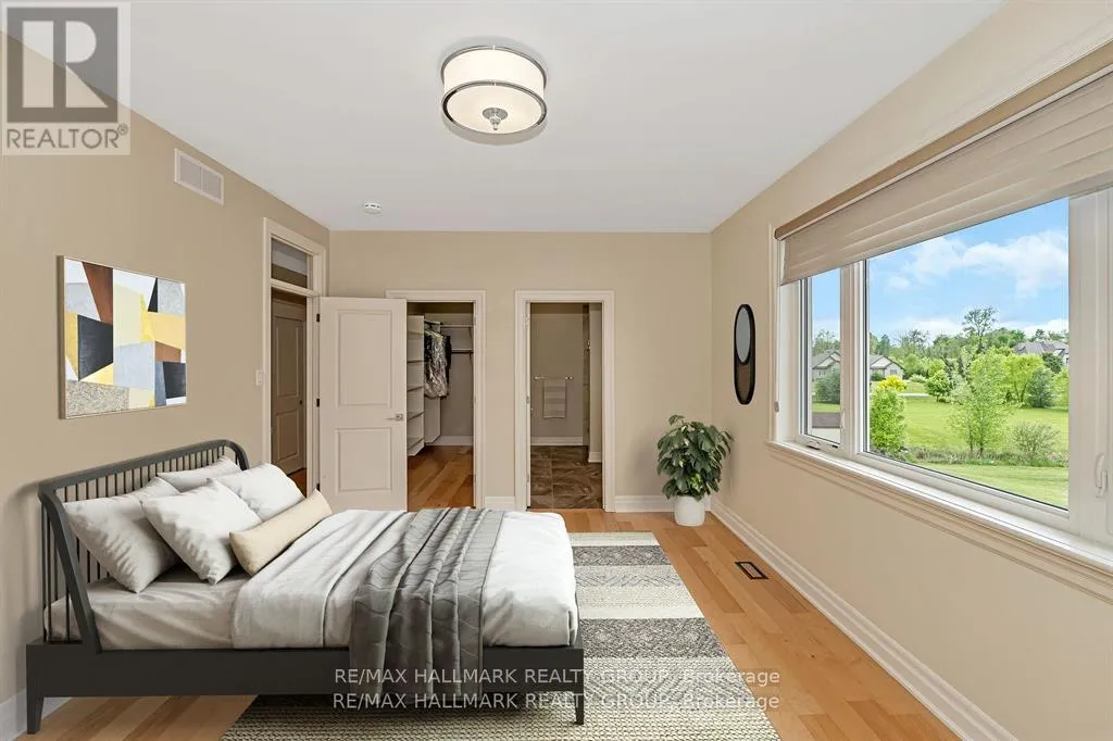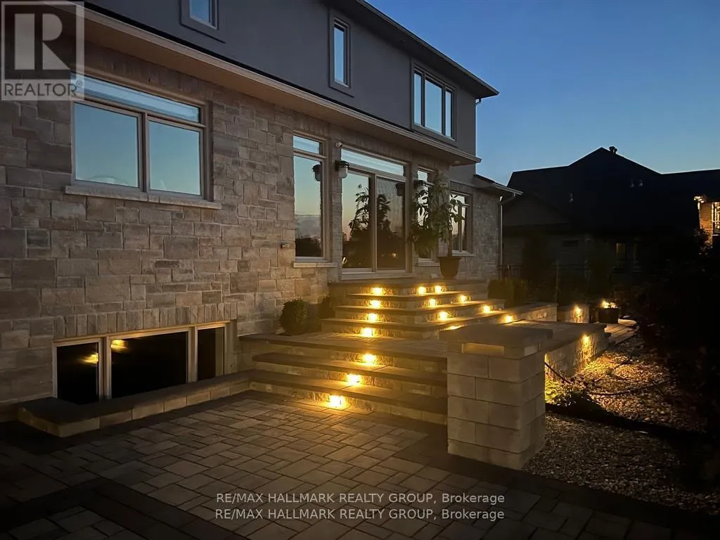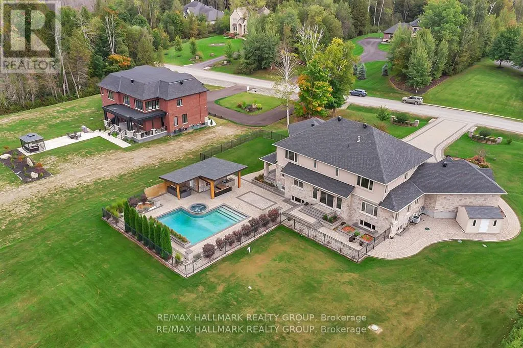 +"PublicRemarks": "Welcome to this extraordinary estate in the prestigious Rideau Forest community of Manotick. Set on a beautifully landscaped lot, this custom-built residence offers over 7,000 sq. ft. of impeccably designed living space, tailored for both family comfort and grand-scale entertaining. Step inside to a light-filled main floor where elegance meets functionality. The luxurious primary suite is conveniently located on the main level, complete with a spa-inspired ensuite with heated floors and spacious walk-in closet. Each of the four additional bedrooms upstairs feature their own private ensuite and walk-in closet, offering unparalleled privacy and comfort. The heart of the home is the show-stopping chefs kitchen, boasting dual islands, a massive walk-in pantry, and premium appliances, perfect for both casual family meals and gourmet entertaining. A dedicated main floor office provides a quiet retreat for work or study. Unique to this home are two separate garages , two car on each side each leading into well-appointed mudrooms, offering ample storage and family-friendly convenience. Upstairs, a versatile loft area and a large laundry room add to the home's thoughtful layout. The finished lower level is an entertainers dream, featuring a kitchen and bar area, private movie theater that seats 7 in world class recliners, a fitness studio, lounge space, and a luxurious bathroom with a steam shower. Step outside to your private oasis, a resort-style pool with waterfall Hot Tub, complete with a fully equipped pool house and an outdoor kitchen, and lounge area with TV and surround sound, gas fireplace, bar and remote controlled screens, perfect for summer gatherings. Every detail of this home reflects quality, style, and timeless sophistication. An exceptional opportunity to own one of Manoticks finest estates. (id:62650)"