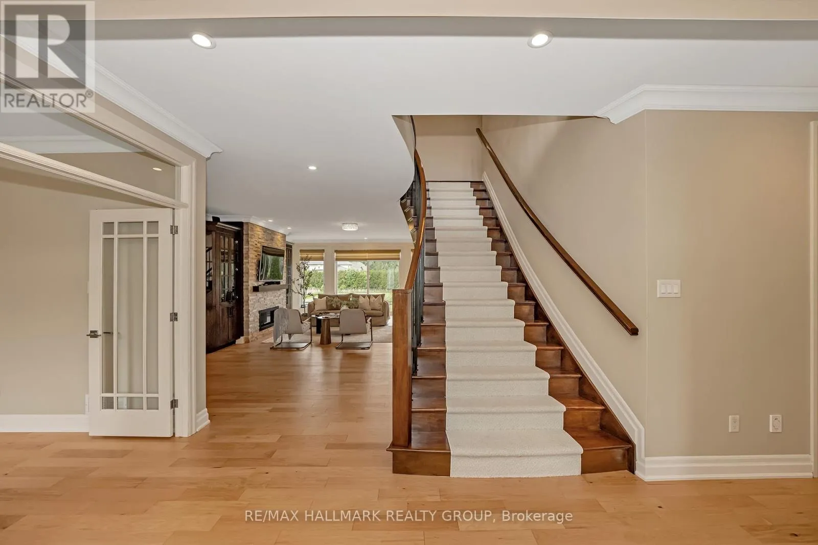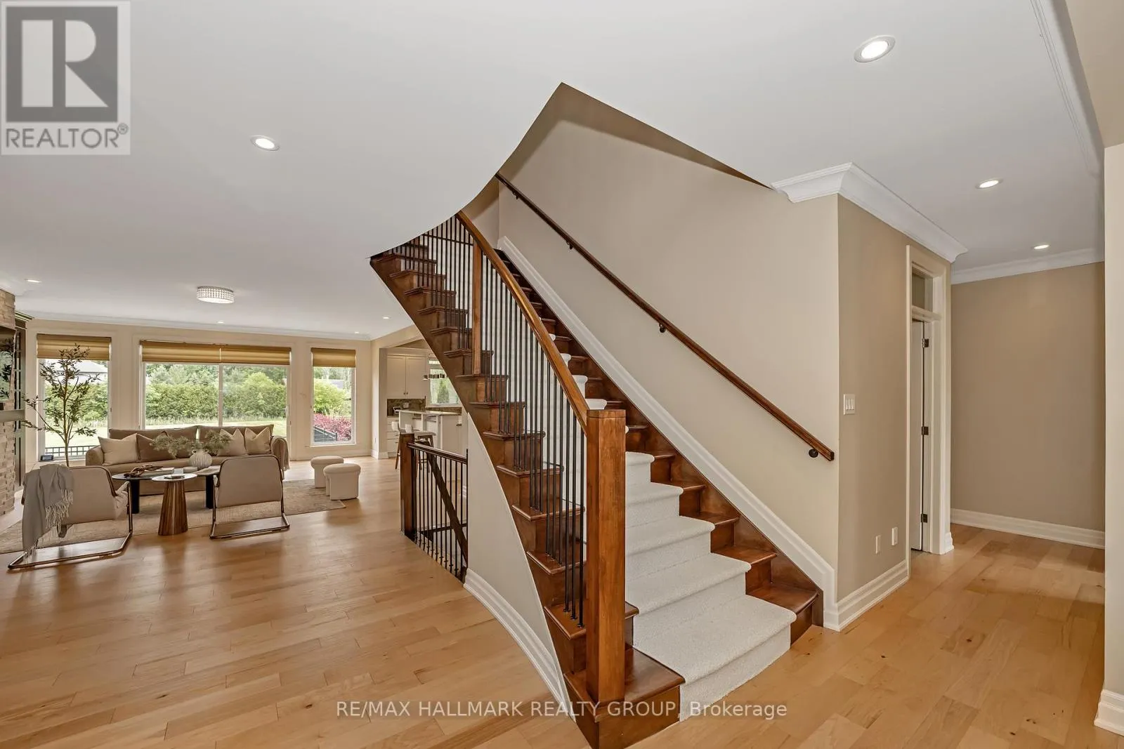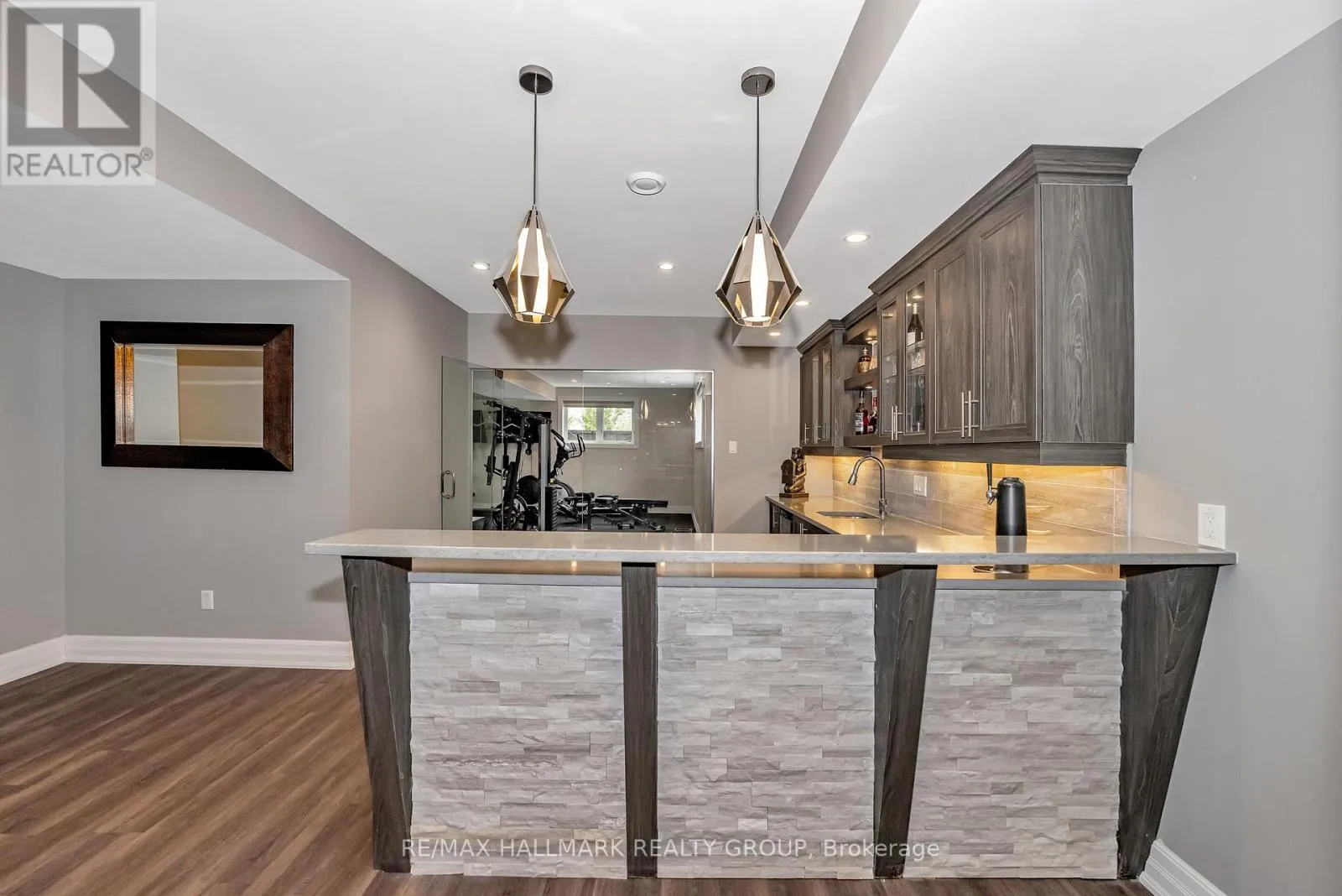 +"PublicRemarks": "Welcome to this extraordinary estate in the prestigious Rideau Forest community of Manotick. Set on a beautifully landscaped lot, this custom-built residence offers over 7,000 sq. ft. of impeccably designed living space, tailored for both family comfort and grand-scale entertaining. Step inside to a light-filled main floor where elegance meets functionality. The luxurious primary suite is conveniently located on the main level, complete with a spa-inspired ensuite with heated floors and spacious walk-in closet. Each of the four additional bedrooms upstairs feature their own private ensuite and walk-in closet, offering unparalleled privacy and comfort. The heart of the home is the show-stopping chefs kitchen, boasting dual islands, a massive walk-in pantry, and premium appliances, perfect for both casual family meals and gourmet entertaining. A dedicated main floor office provides a quiet retreat for work or study. Unique to this home are two separate garages , two car on each side each leading into well-appointed mudrooms, offering ample storage and family-friendly convenience. Upstairs, a versatile loft area and a large laundry room add to the home's thoughtful layout. The finished lower level is an entertainers dream, featuring a kitchen and bar area, private movie theater that seats 7 in world class recliners, a fitness studio, lounge space, and a luxurious bathroom with a steam shower. Step outside to your private oasis, a resort-style pool with waterfall Hot Tub, complete with a fully equipped pool house and an outdoor kitchen, and lounge area with TV and surround sound, gas fireplace, bar and remote controlled screens, perfect for summer gatherings. Every detail of this home reflects quality, style, and timeless sophistication. An exceptional opportunity to own one of Manoticks finest estates. (id:62650)"