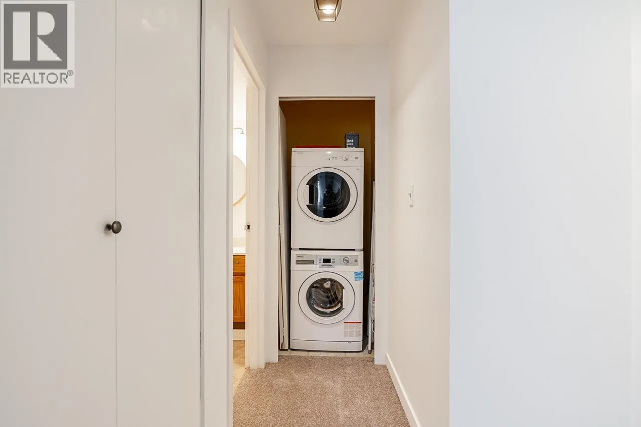 TOP FLOOR, CORNER 2 BED & 1.5 BATH updated suite with generous, private rooftop deck perfect for entertaining, BBQ, gardening or as an extension of your living space. Bright & spacious, 1100 square ft featuring new carpets throughout, fresh paint, upgraded appliances & light fixtures, newer HW tank (2023), 2 upgraded smart thermostats, wood burning FP, ample storage & covered