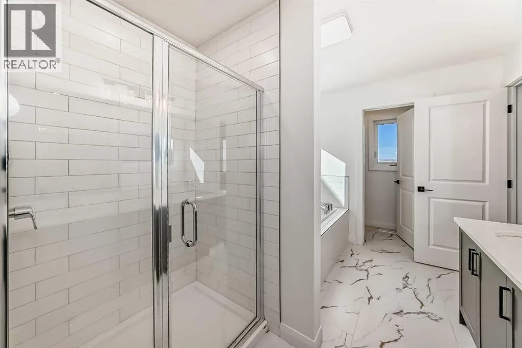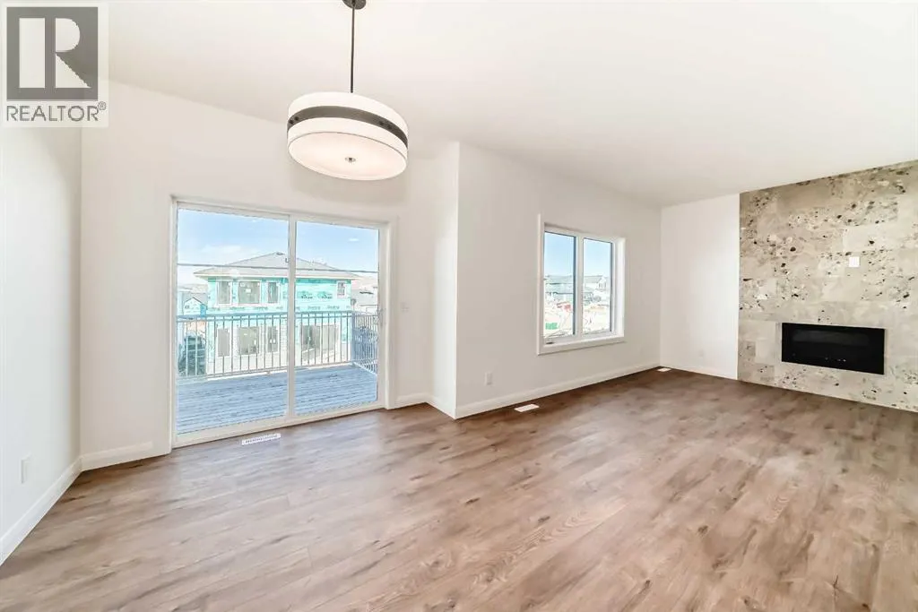 Move-in ready, Broadview Homes’ York model in Rivercrest, Cochrane blends comfort, style, and function across 2,082 ft². The main floor features a dedicated front office, an open kitchen and dining area, a walk-through pantry to a modern culinary workspace, and a living room warmed by a gas fireplace with an upgraded tile surround. Quality finishes run throughout, with an appliance