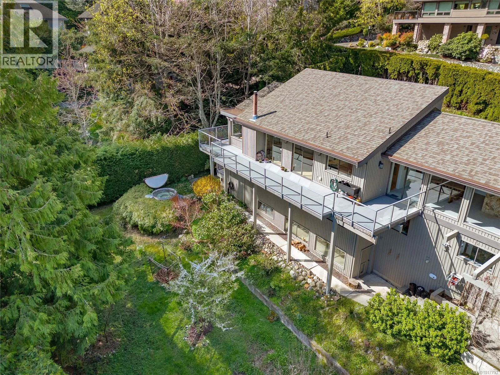 This bright Broadmead architectural designed west coast executive home was built to take advantage of its hilltop setting. Providing a wonderful private wooded retreat & showcasing incredible sweeping ocean and mountain views. Great natural light pours through the huge picture windows and abundant skylights. Over 1,500 sq. ft. of decks, courtyards, patios and hot tub area to relax and experience