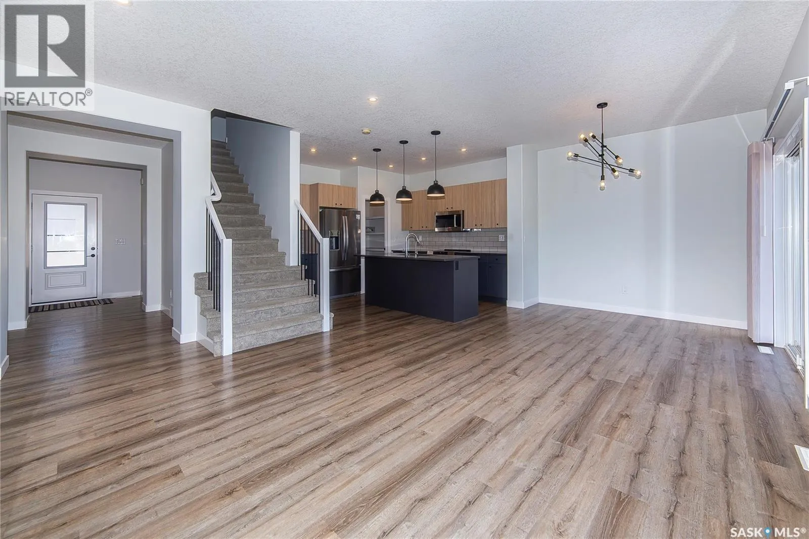Welcome to 259 Prasad Manor, a beautiful two-storey North Ridge home in Saskatoon’s vibrant Brighton community. Offering 1,968 sq ft of modern living space, features a bright open-concept main floor with 9-ft ceilings, pot lights, and a living room accented by an electric fireplace. The stunning two-toned kitchen showcases quartz countertops, tiled backsplash, upgraded stainless steel appliances, a garburator, reverse