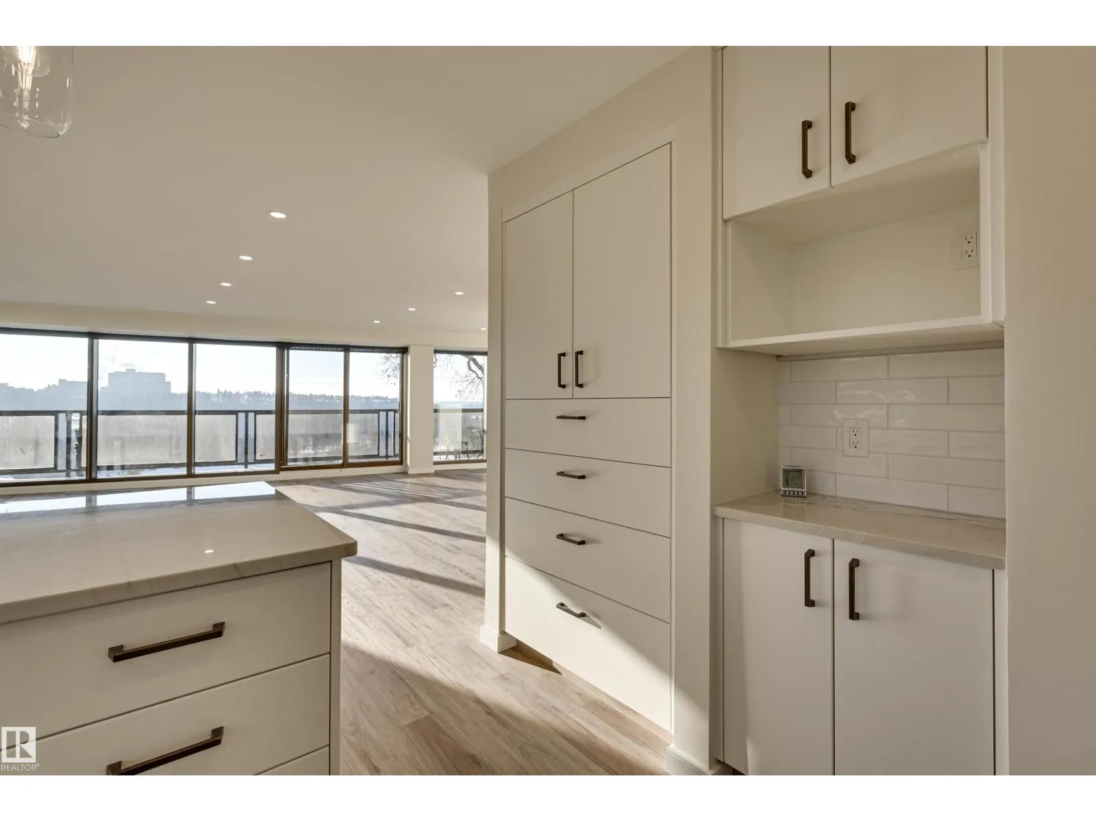 River Valley & City Views! 1,371 Sq.Ft. Private Full-Floor Condo. Enjoy stunning views from this beautifully renovated condo in River Cliff Place, an exclusive 5-unit building on the Promenade. Occupying the entire main floor with direct elevator access, this bright, open-concept home features floor-to-ceiling south-facing windows, luxury vinyl plank flooring, a gas fireplace, and kitchen with tons of cabinetry, granite