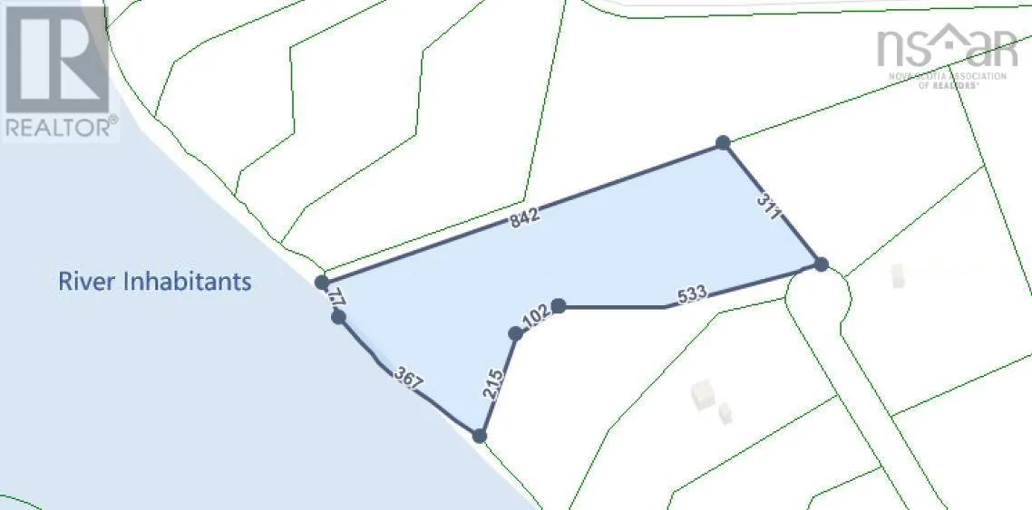 In one of the most popular regions of Cape Breton, you will find this 5.16 Acre riverfront property (Lot 12A) in Evanston, just a few minutes from a small medical clinic directly on the River Inhabitants. The property, which can be used all year round, is approached via a private access road (Dorothy Robinson Drive) and is located at the