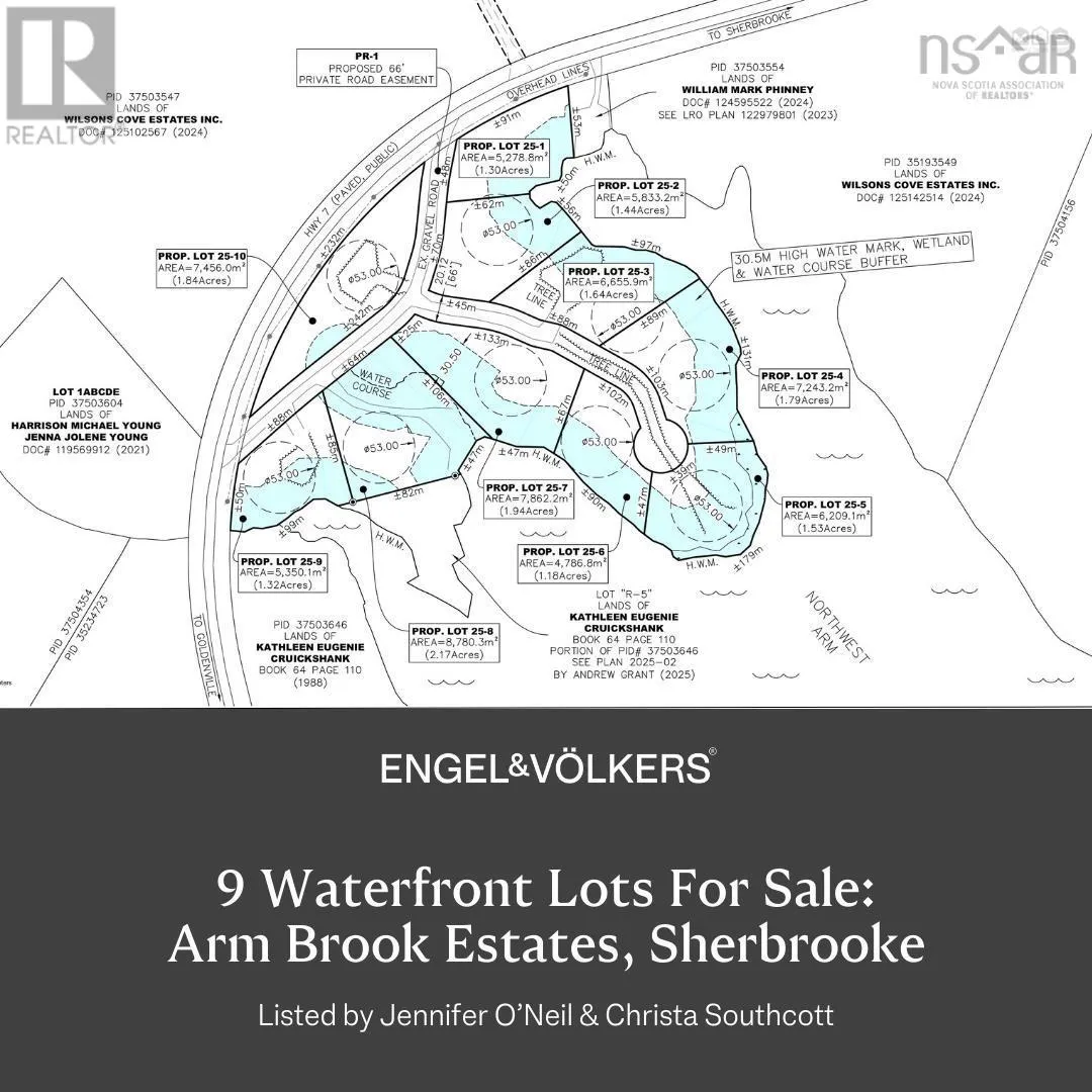 Welcome to Arm Brook Estates. Nestled along the picturesque banks of the St. Marys River flowing into the Atlantic ocean, in Sherbrooke, Nova Scotia. These magnificent waterfront lots ranging from 1.18 acres to 2.17 acres and up to 587 ft of water frontage, offer an unparalleled living experience steeped in natural beauty and rich history. Each lot is cleared with