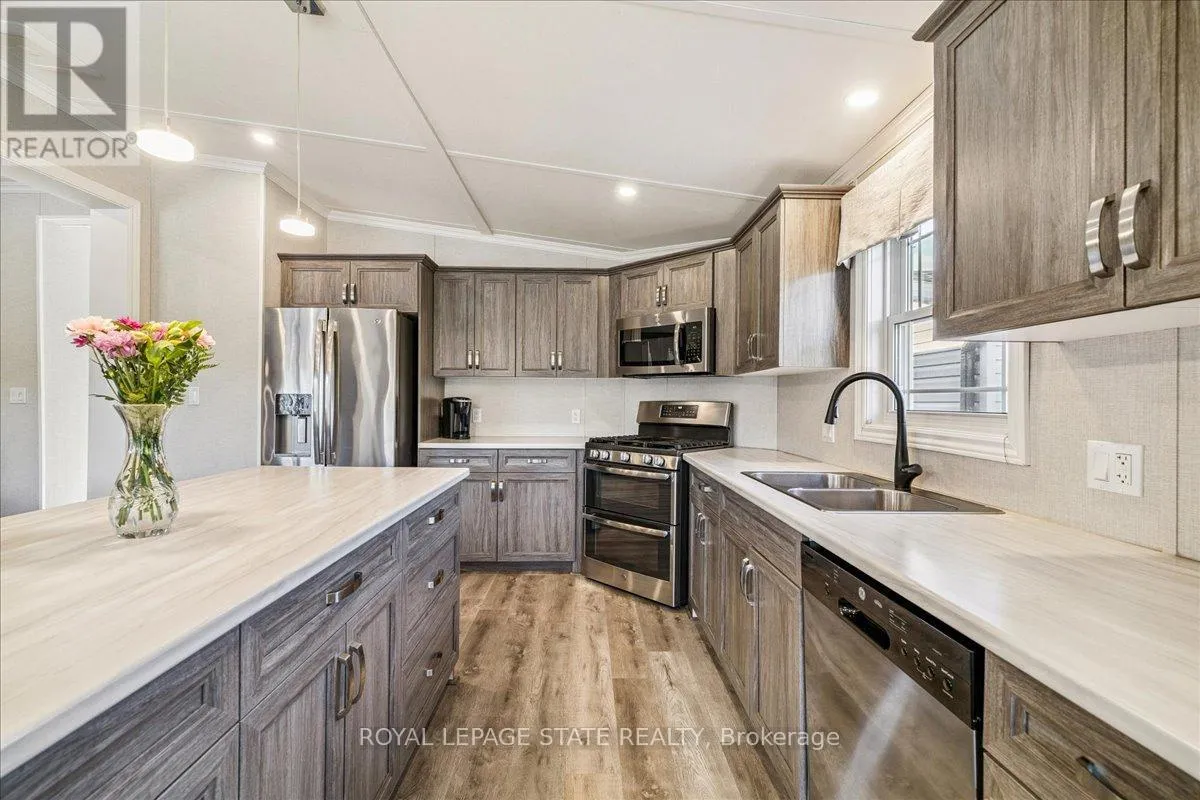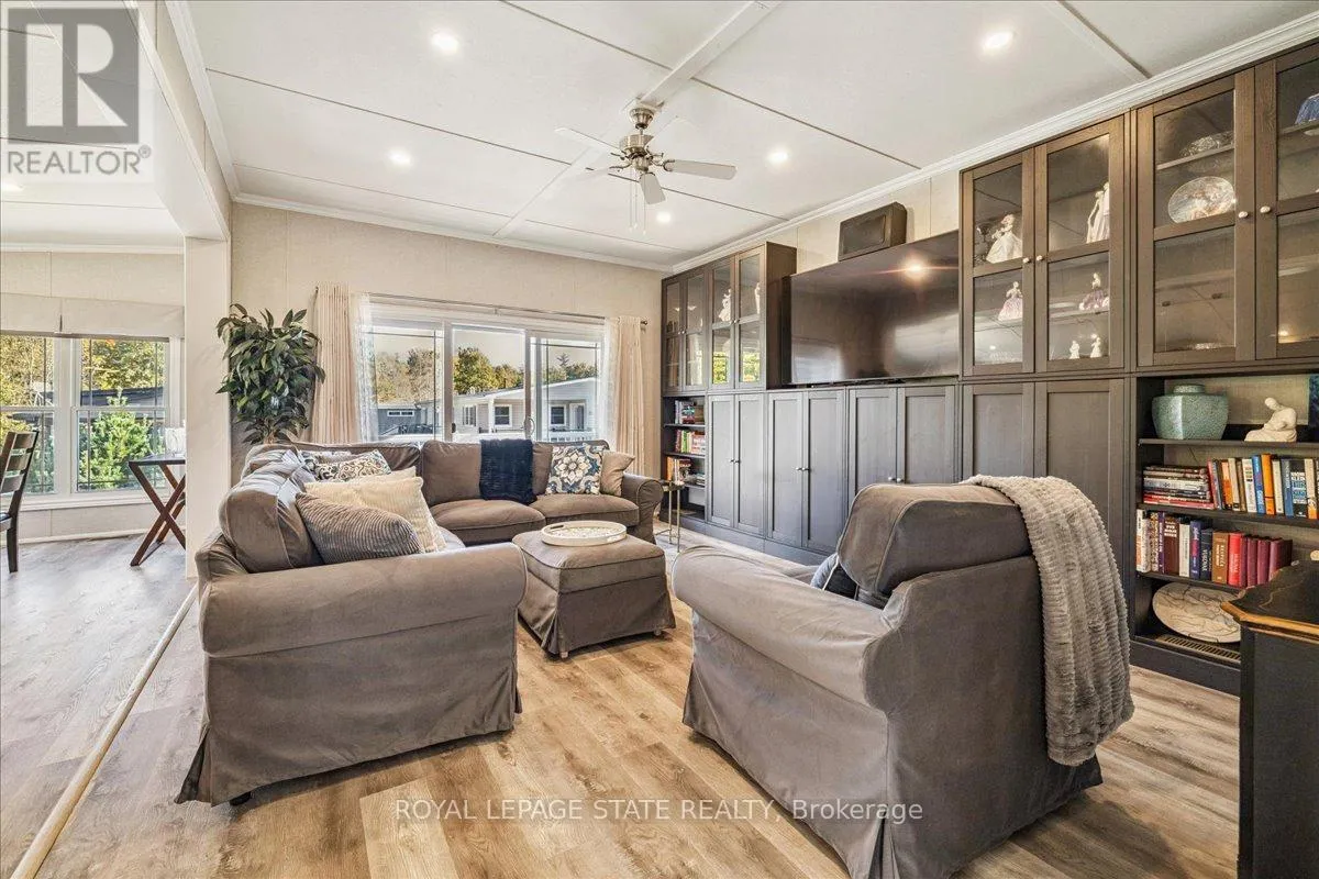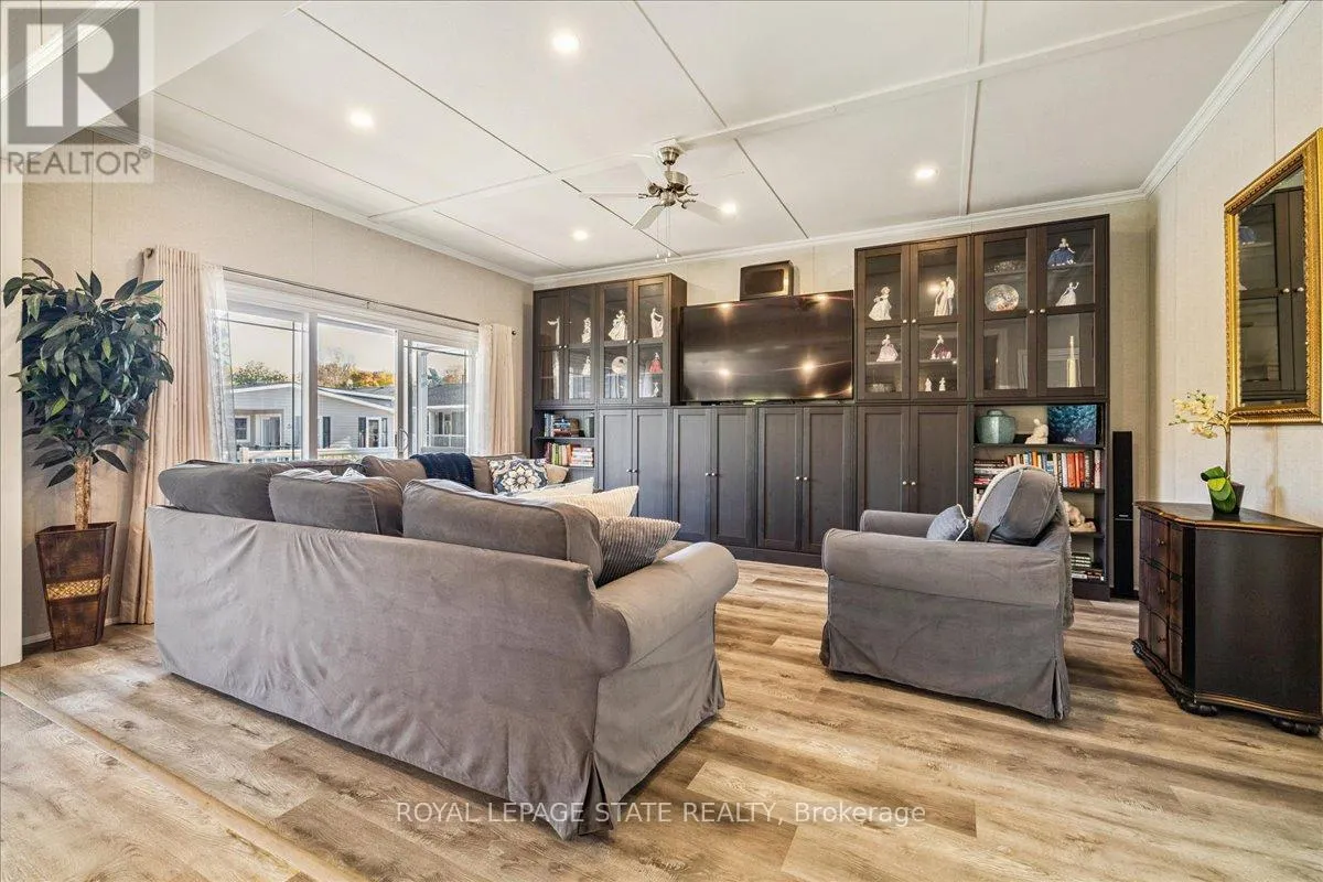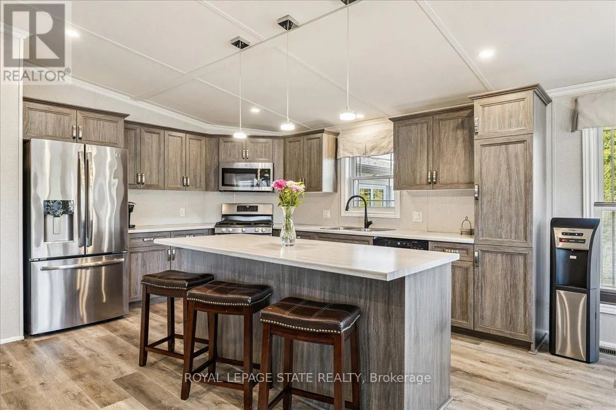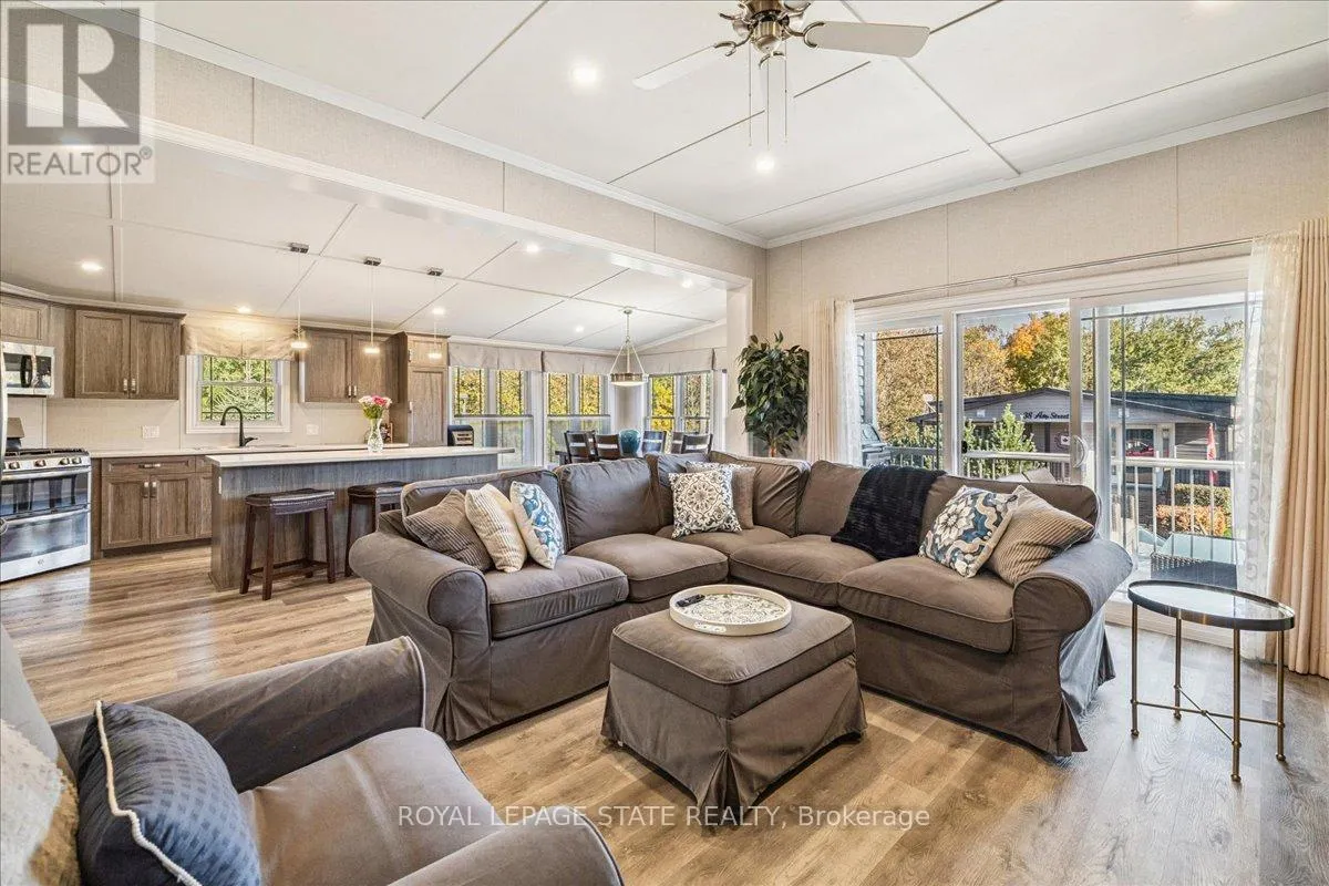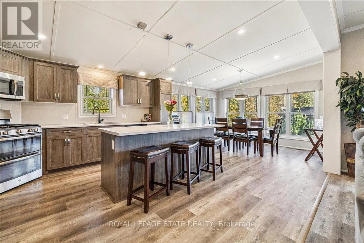 Welcome to this exceptional modular home, perfectly situated on leased land within the exclusive gated community of Lost Forest in north Burlington. Offering year-round comfort and a resort-like lifestyle, residents enjoy interior luxury and fantastic site amenities, including a seasonal pool. Step into the charming foyer and into an open-concept, single-level design, featuring soaring ceilings, and offering one of the