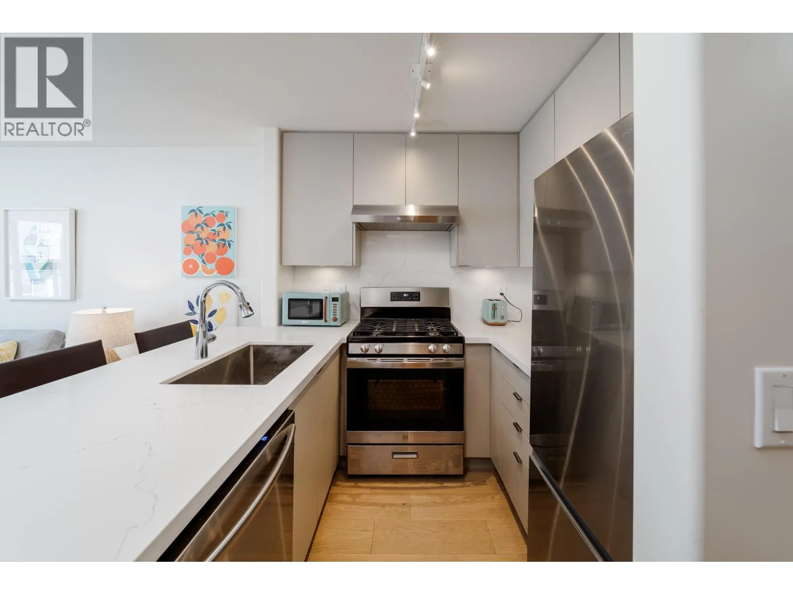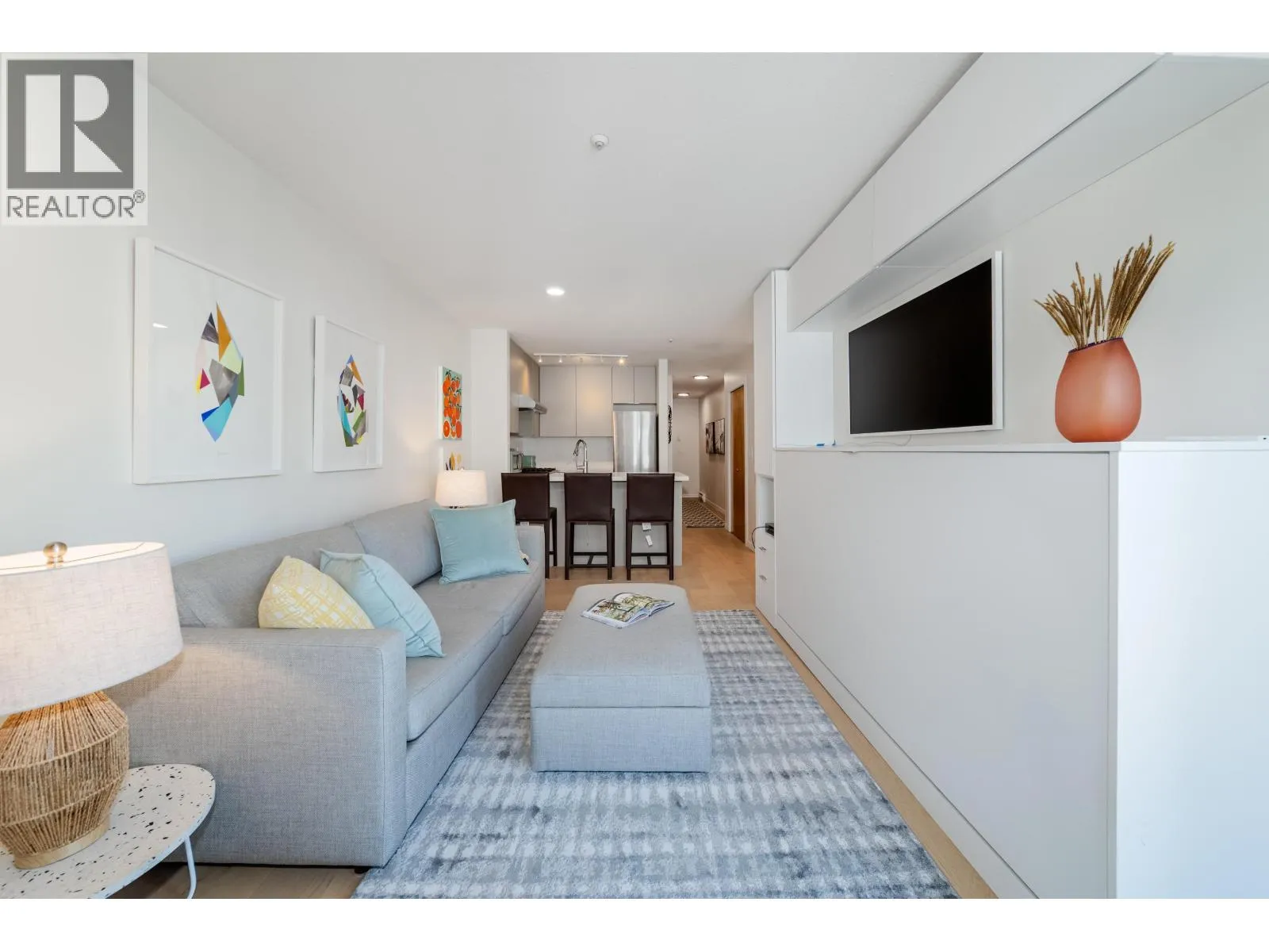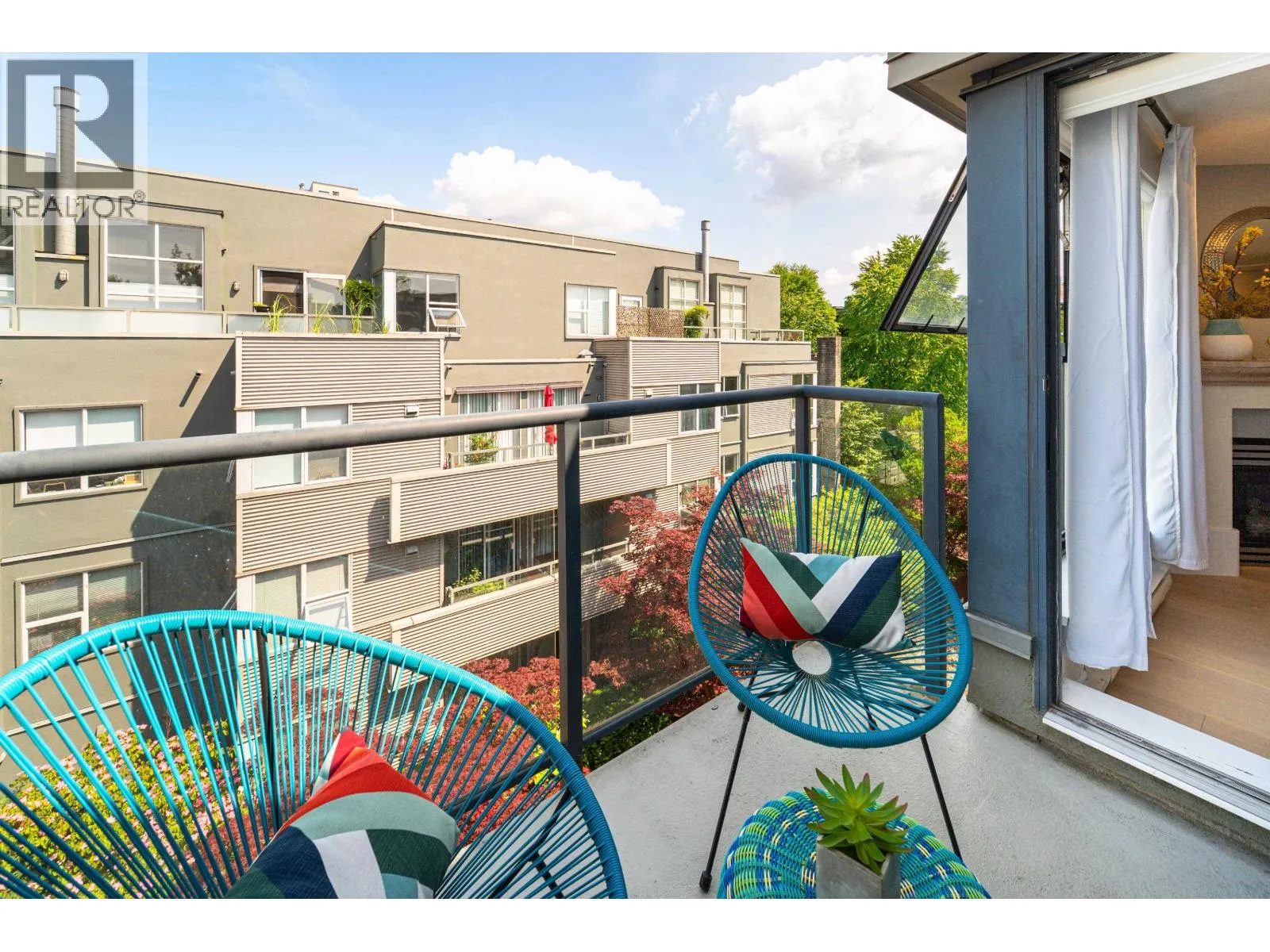 Top-floor 1 bed + den in sought-after Arbutus Walk, Kitsilano. Featuring a private balcony in this bright, quiet home with cozy gas fireplace & spacious layout. Kitchen boasts quartz countertops, gas stove, & stainless appliances. Custom wall bed, brand new bathroom renovation, and EV outlet in the parking spot add modern comfort and convenience. Ample storage, in-suite laundry & flex