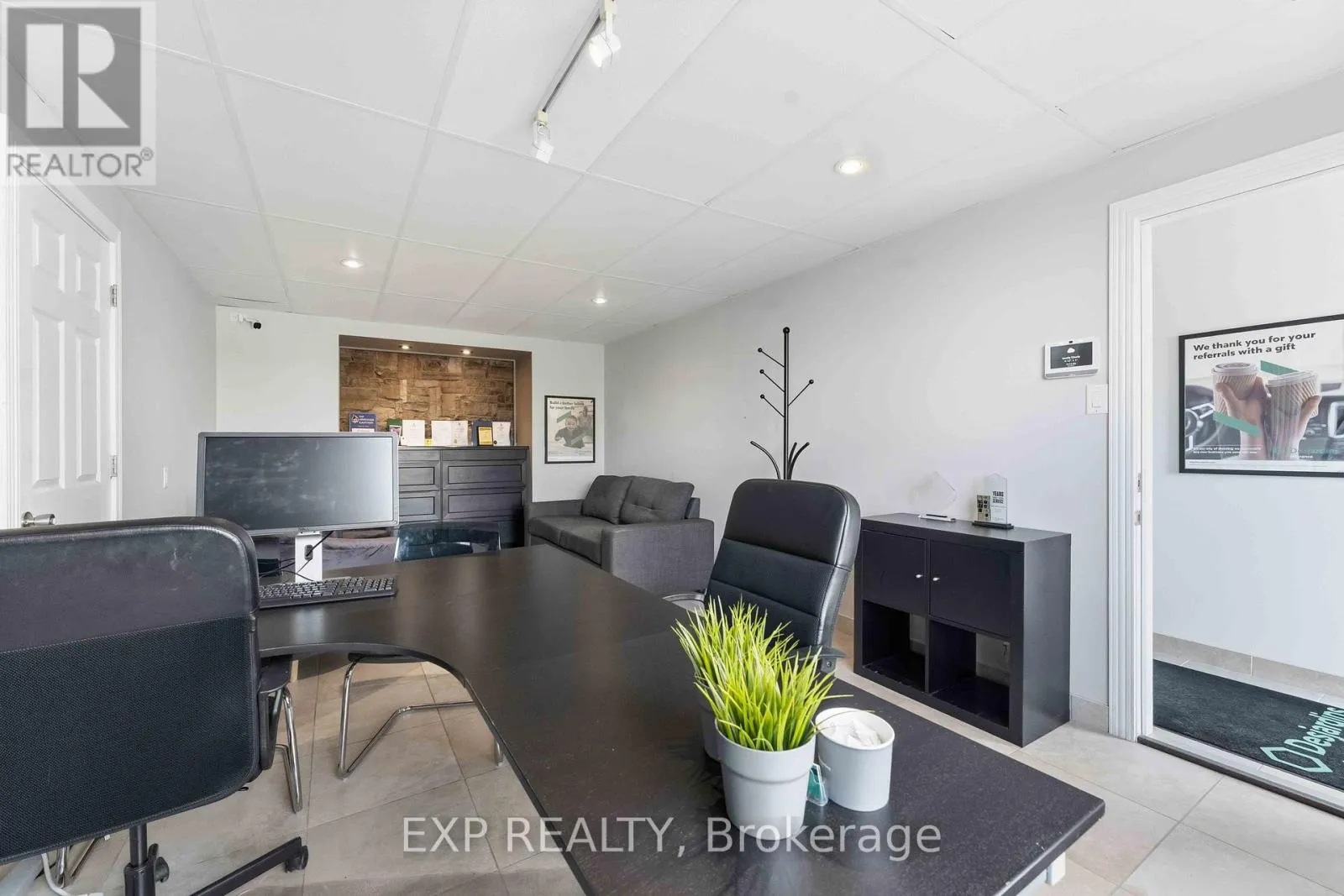 A rarely offered opportunity to lease a modern, two storey commercial condo with exceptional visibility and flexible professional space. This property features separate entrances for each level, offering versatility for businesses seeking a polished and professional presence. The main floor currently includes approximately 200 sq. ft. of reception-style space ideal for a welcoming client area, private office, or professional