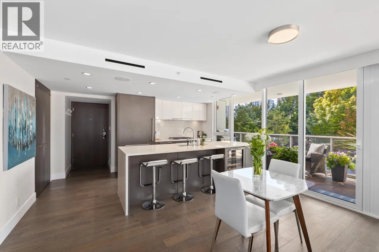 Welcome to The Charleson-Yaletown’s crown jewel of modern luxury. This south-facing 2 bed, 2 bath corner home offers nearly 420 sq. ft. of covered outdoor living with gas hookup. Inside boasts wide-plank oak hardwood, A/C, motorized blinds, built-in speakers, custom millwork, & large walk-in closets. Spa-inspired baths feature radiant heated floors, Kohler rain shower, deep soaker tub & backlit mirrors.