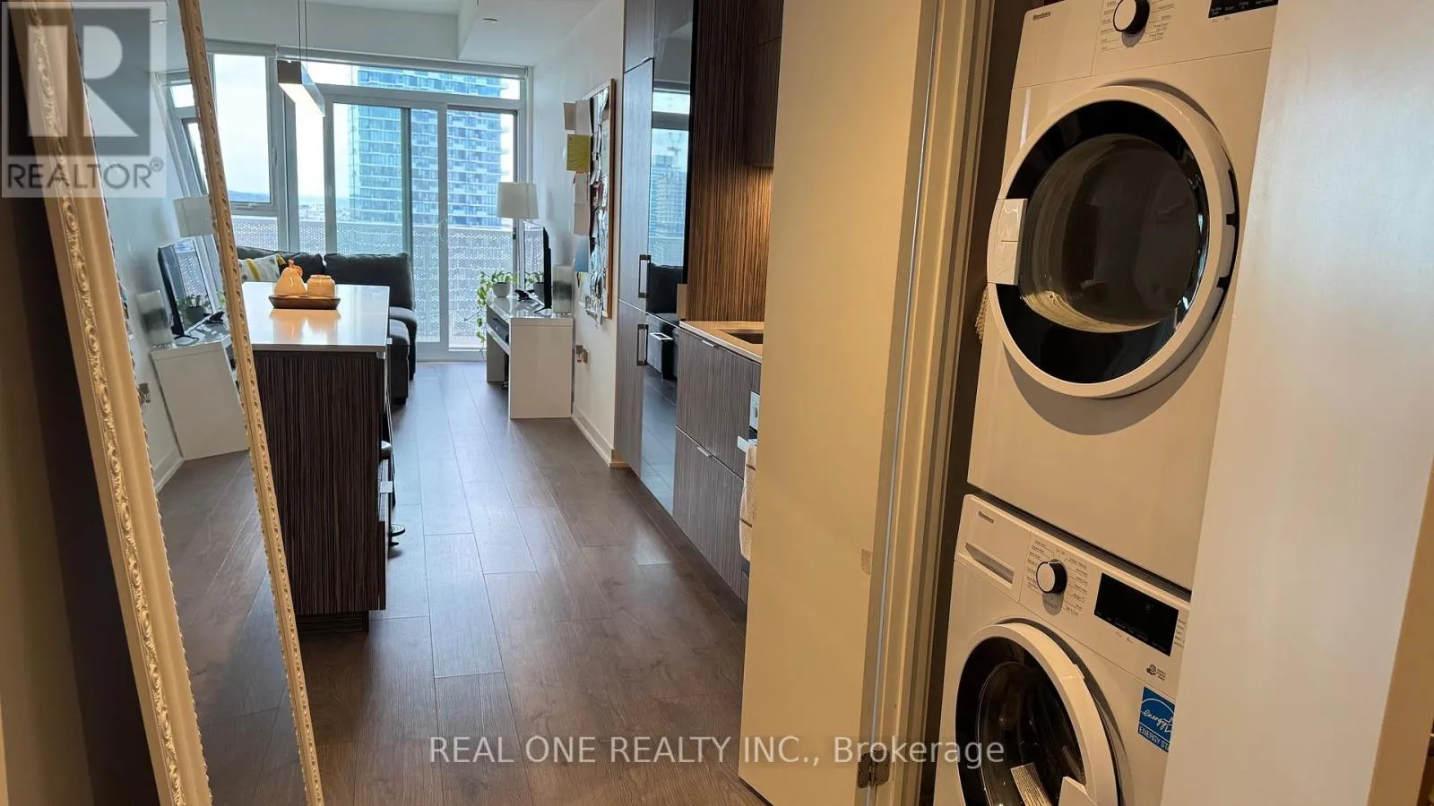 Welcome to Daniels Lighthouse Tower where urban convenience meets waterfront living. This beautifully designed 1-bedroom suite offers an open-concept layout with a sleek gourmet kitchen, quartz countertops, and a spacious island perfect for entertaining. Enjoy laminate flooring throughout, 9-ft smooth ceilings, a modern 4-piece bathroom, and a private balcony with breathtaking east and lake views. With a remarkable
