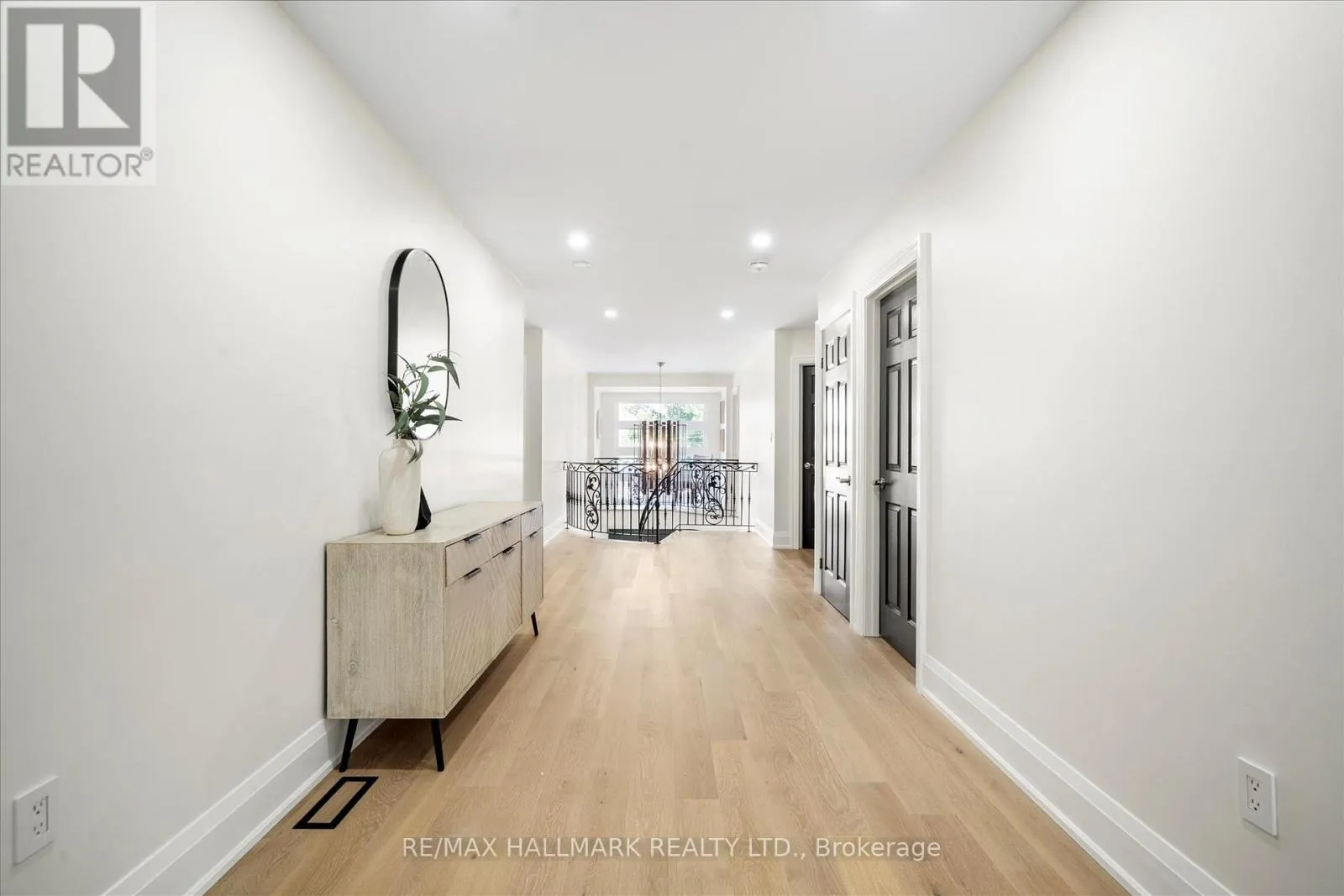 life. Soaring ceilings, premium lighting, engineered hardwood floors, and a striking cast-iron staircase set a sophisticated tone. A main-floor bedroom with a private ensuite and walk-in closet is perfect for guests or multi-generational living. The great room impresses with dramatic smooth ceiling heights, a sleek linear fireplace, and 14-foot sliding glass doors leading to a private patio. The chef’s kitchen includes a massive centre island with additional storage, quartz counters and backsplash, a walk-in pantry, and premium built-in appliances, including a 48-inch gas range and wine cooler. Upstairs, the sunlit primary suite offers a walk-in closet and spa-like ensuite with a freestanding soaking tub, custom double vanity, and a glass-enclosed rain shower with body jets. Spacious second story family room retreat perfect for movie & game nights. The finished lower level adds versatility with above-grade windows, a full kitchen, large living area, and a bedroom with a four-piece ensuite ideal for extended family or guests. Professionally landscaped stonework enhances the nine-car driveway and backyard patio, ready for a pool, garden suite, or outdoor kitchen. Situated near Port Union and Lawrence, commuting is effortless with quick access to the Port Union GO Station and Highway 401. Parks, waterfront paths, shopping, and dining are all close at hand, making this a rare blend of luxury and convenience! (id:62650)