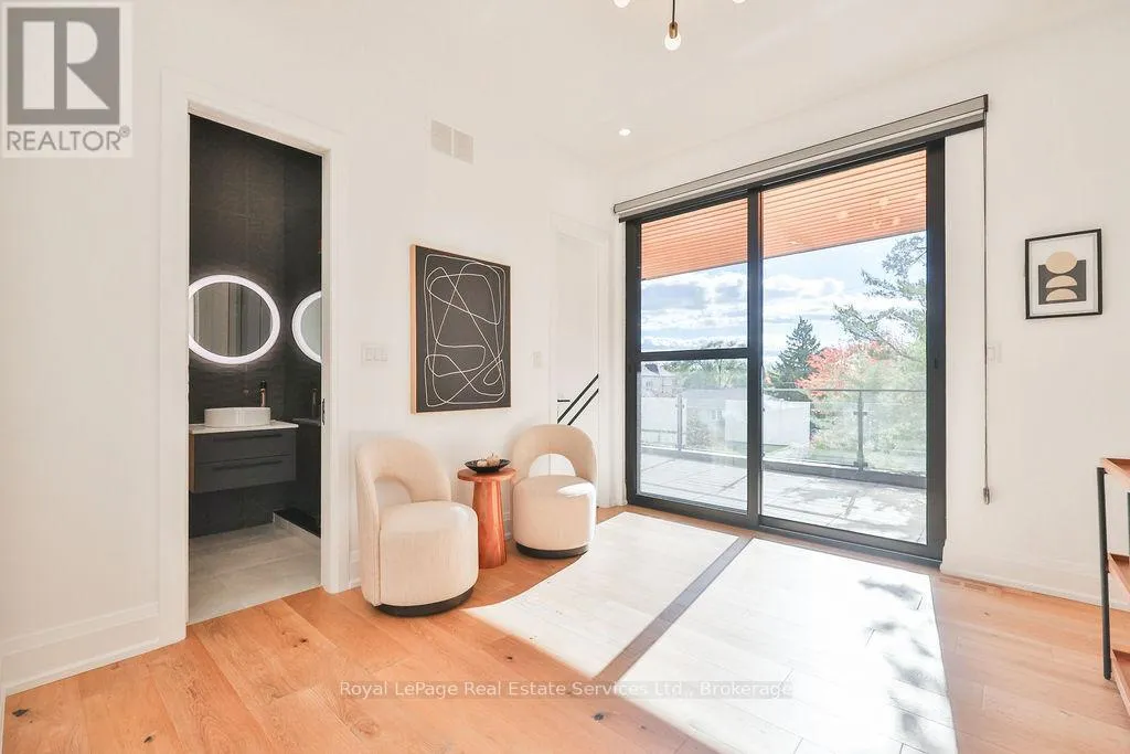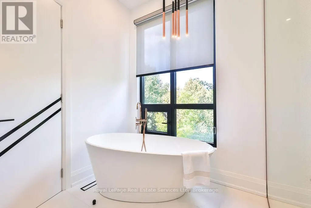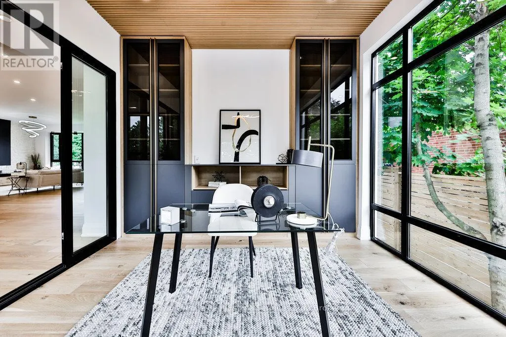 Spectacular custom home, combining West-coast & Scandinavian influences. Over 3300 sqft above grade, light-filled 5 bed, 6 bath with 10′ ceilings and salt water pool, set on a quiet street in West Oakville. Appointed with high end & stylish materials throughout including HOPO aluminum windows, doors & steel screens, wide plank hardwood, custom tile work, and upscale modern light fixtures.
