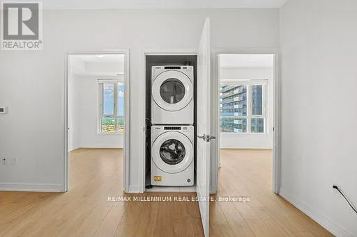 Prime Mississauga Location! Bright and spacious 2-bed, 2-bath, 2 underground parking spaces, and 1 locker condo with a large primary bedroom featuring a 4-piece ensuite. Open-concept living and dining with large windows and walkout to a balcony offering unobstructed city views. Modern kitchen with stainless steel appliances with custom island and quartz countertops. Includes ensuite laundry. Building amenities: concierge, lounge,